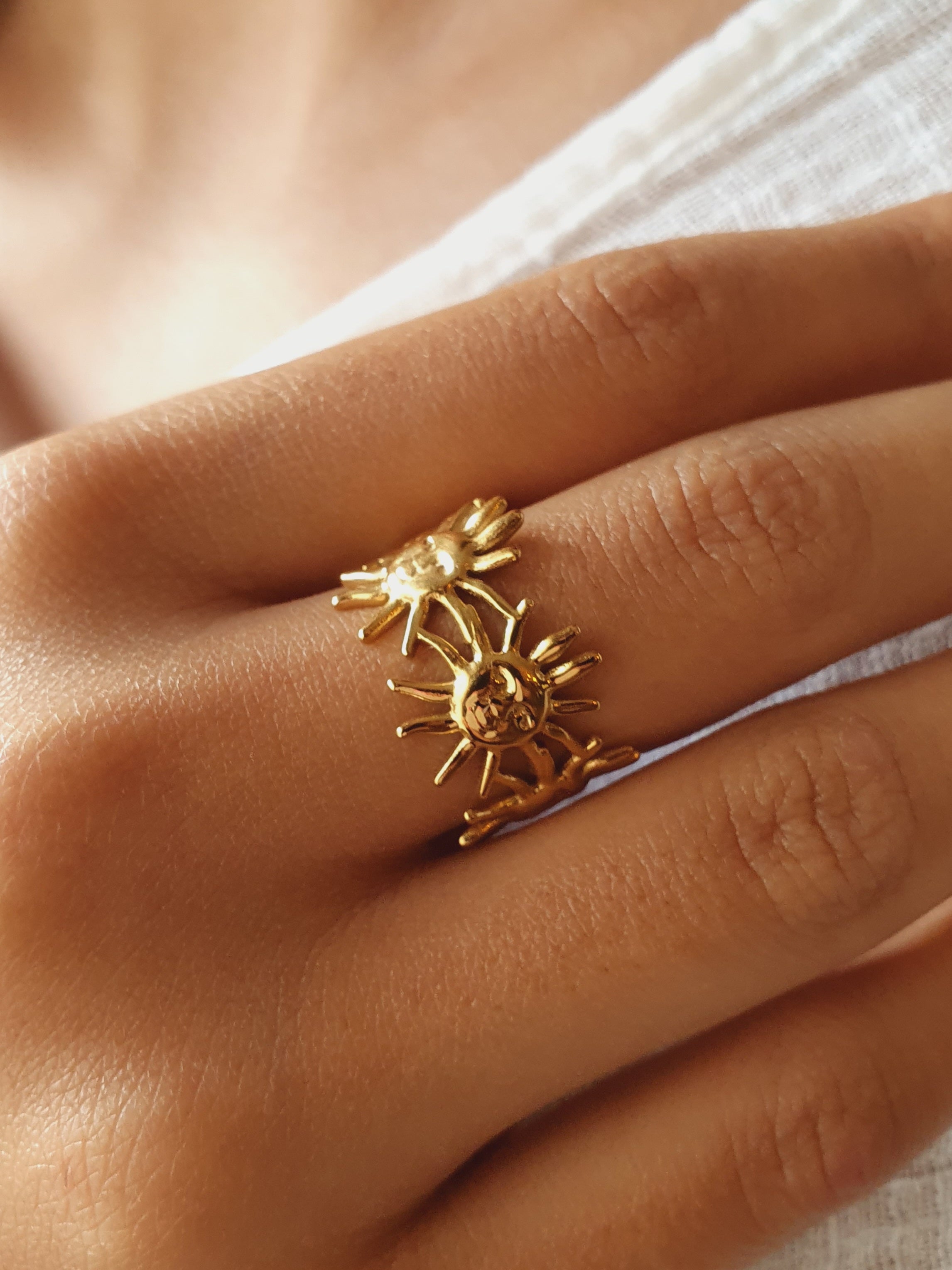 Avec son style solaire et sa présence marquée, cette bague devient un bijou d’expression, parfait pour sublimer un look de jour comme de soirée.