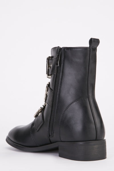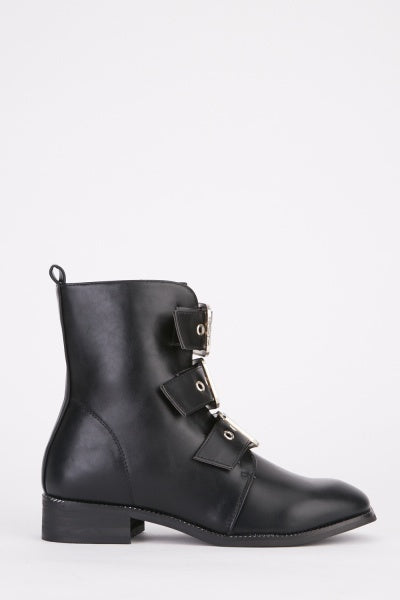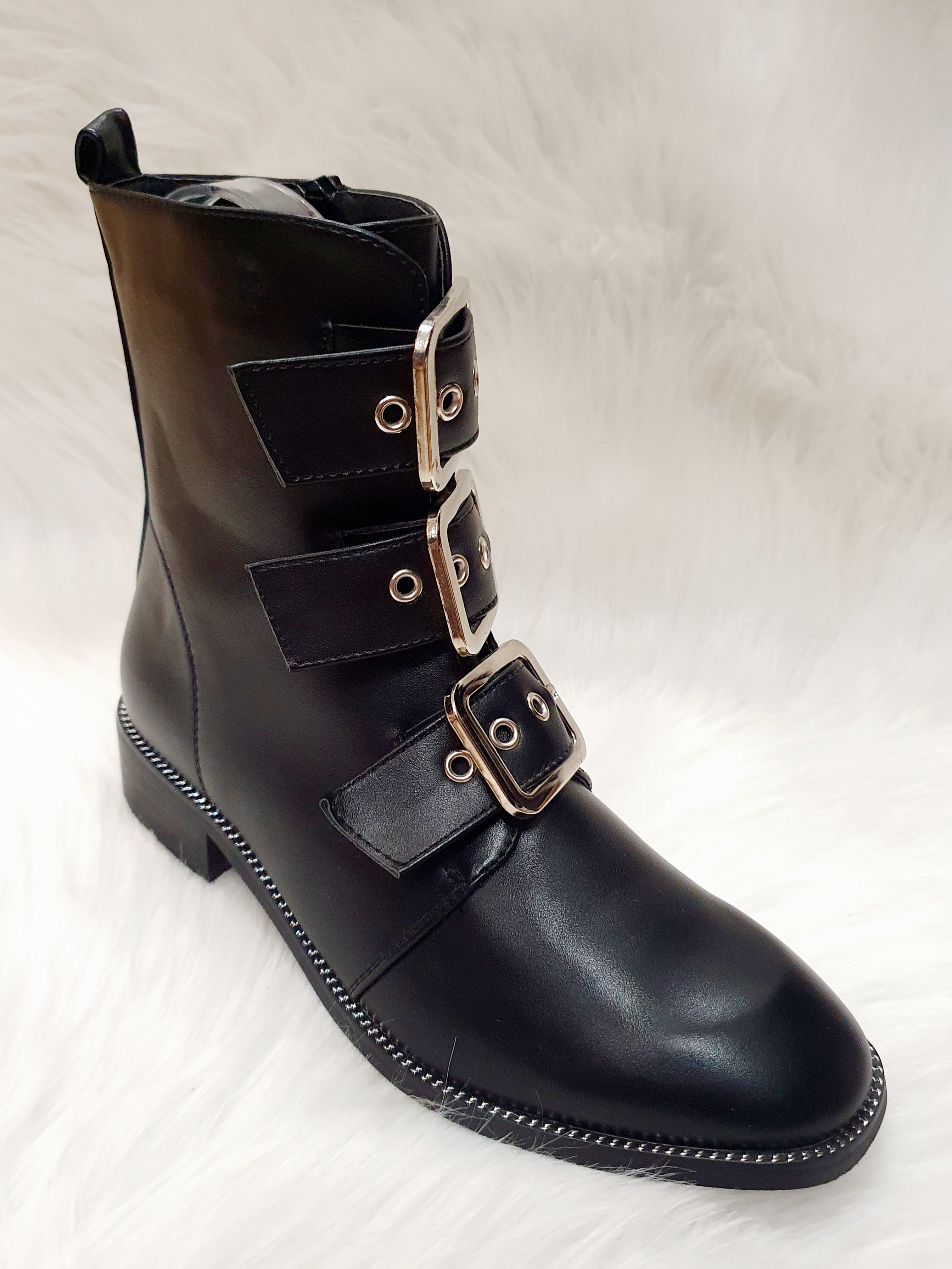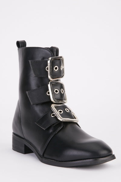 Bottines noires similicuir boucles argentées
