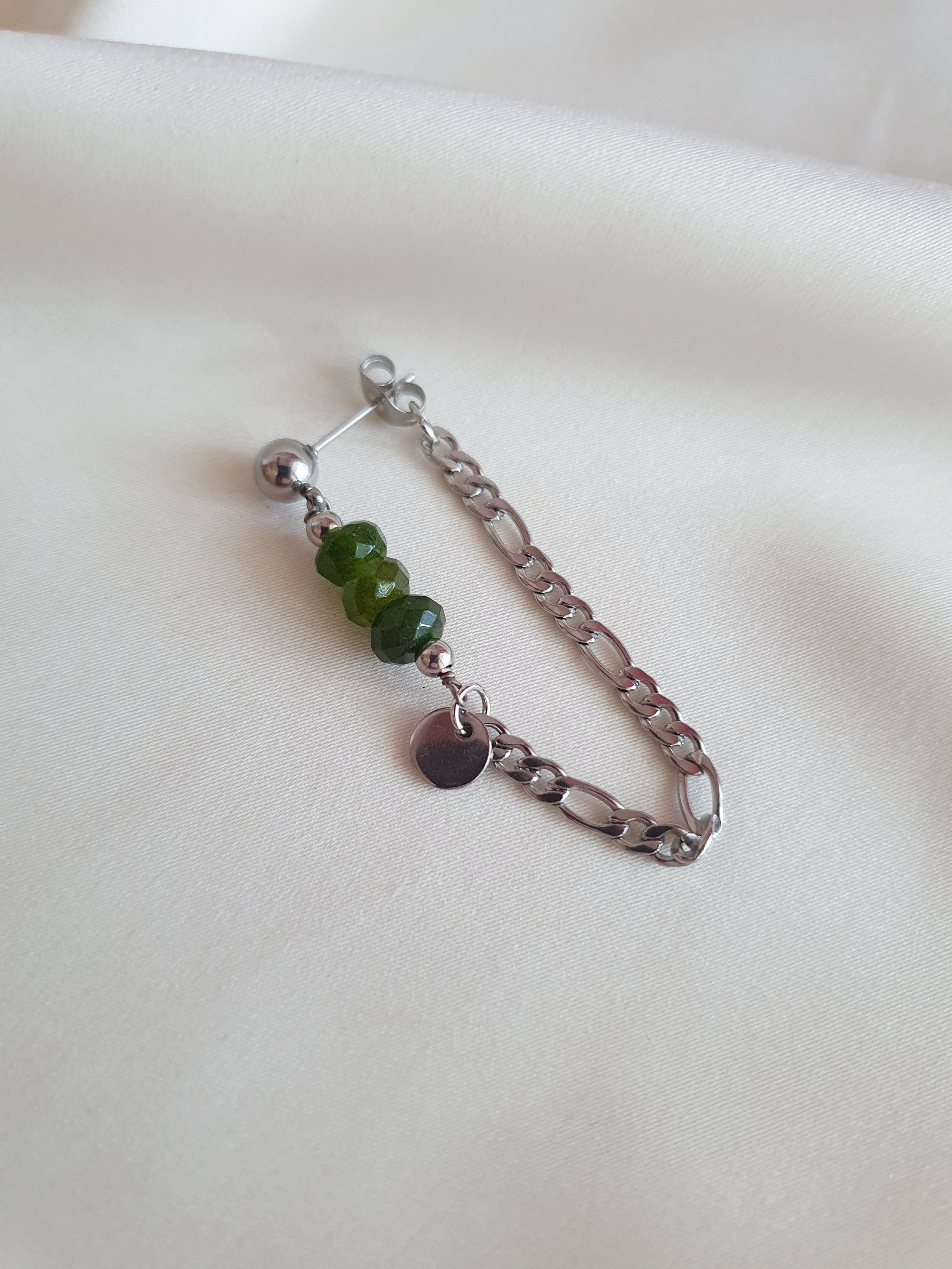 - Description : Acier inoxydable et perles vertes en cristal de verre à facettes, petit médaillon en acier argenté