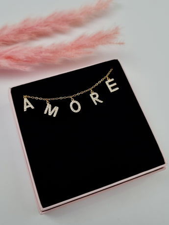 - Petites lettres de taille 1 cm en zircons blancs véritables