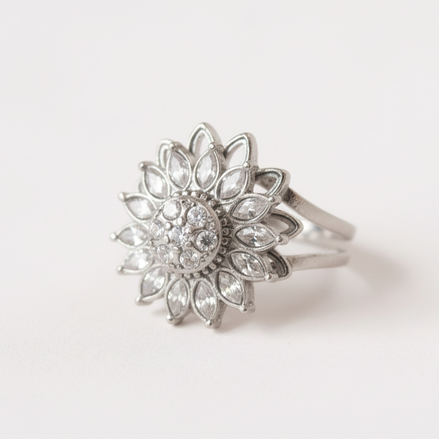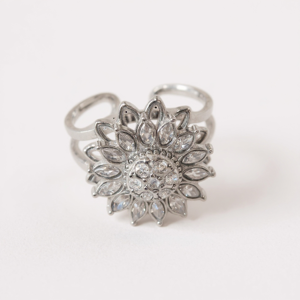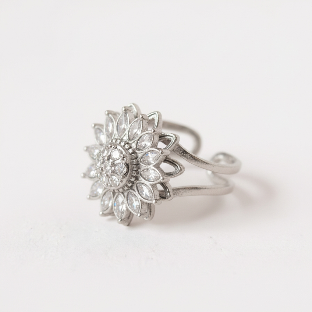Apaisez votre esprit avec notre bague rotative anti-stress en forme de fleur luxueusement sertie. Conçue en acier inoxydable et ornée de pierres étincelantes, cette bague est bien plus qu’un simple bijou : c’est un accessoire bien-être à porter au quotidien dont vous ne pourrez plus vous passer !