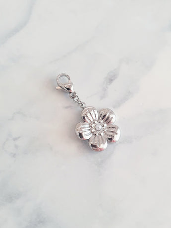 Charm fleur coeur perlé - argenté