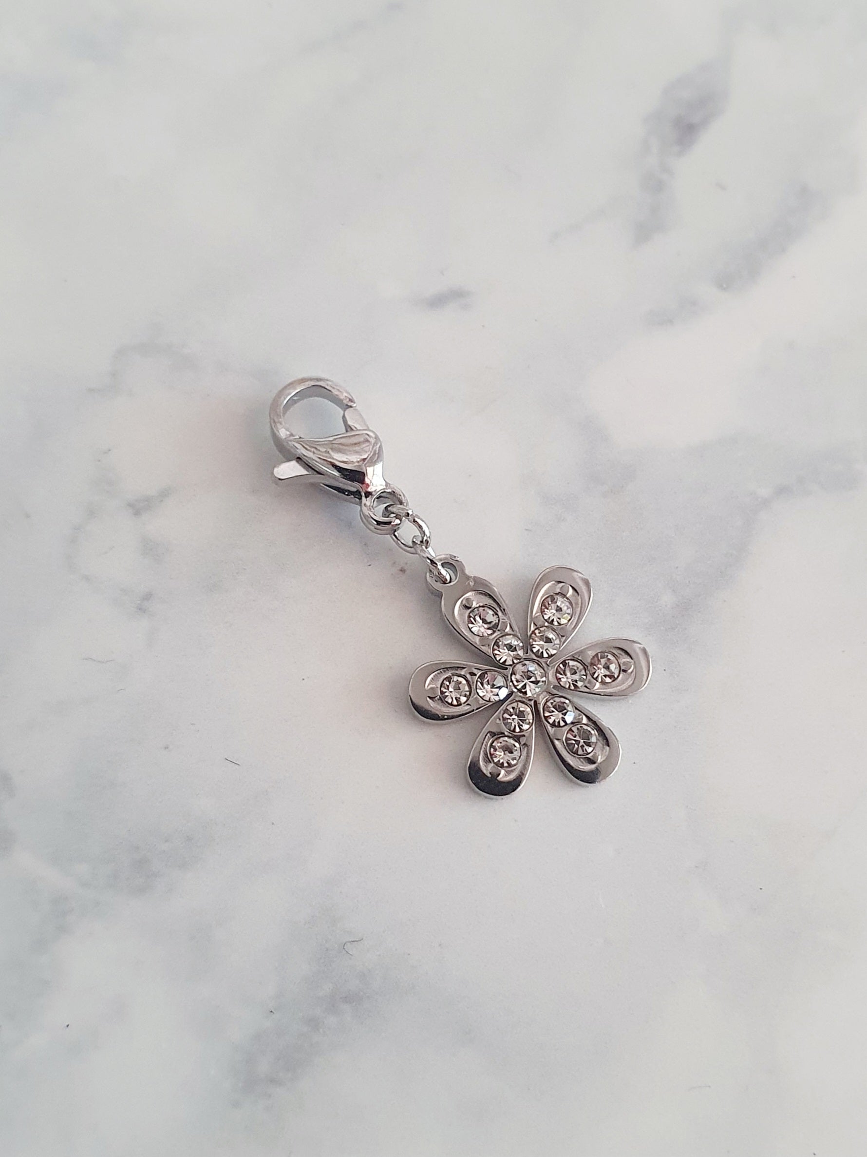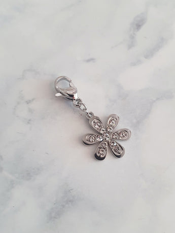 Charm fleur zircons - argenté