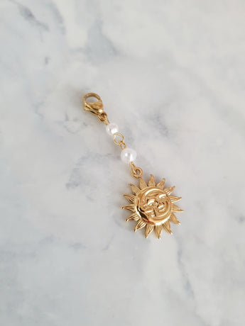 Charm grand soleil & chaînette perlée - doré