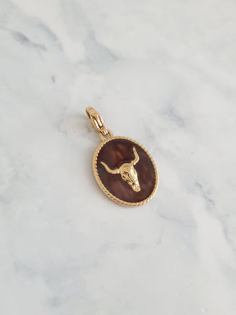 Charm médaillon Buffalo PREMIUM - doré/brun