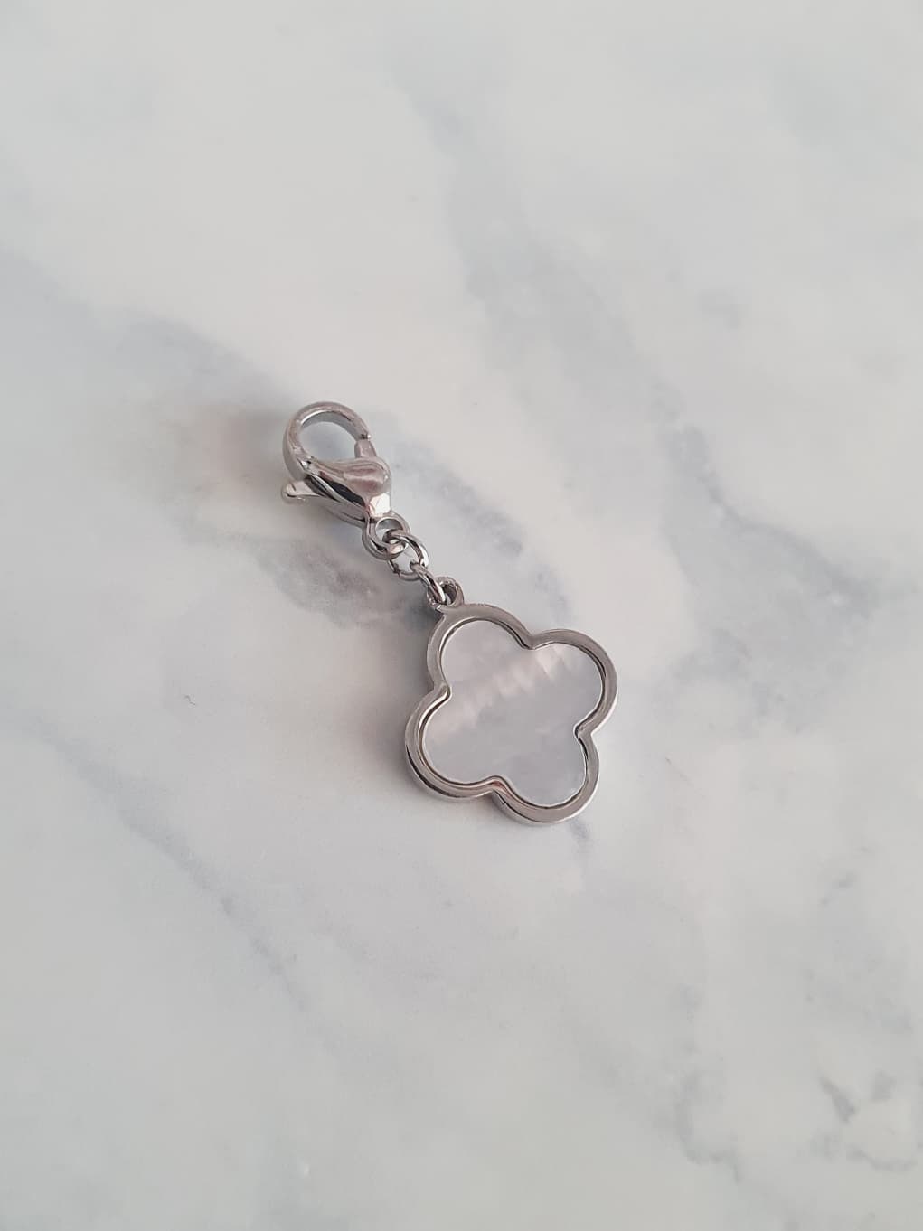 Charm trèfle en nacre contour argenté - argenté | tailles au choix