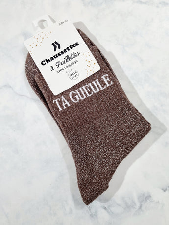 Chaussettes hautes pailletées à message TA GUEULE | Couleur aléatoire