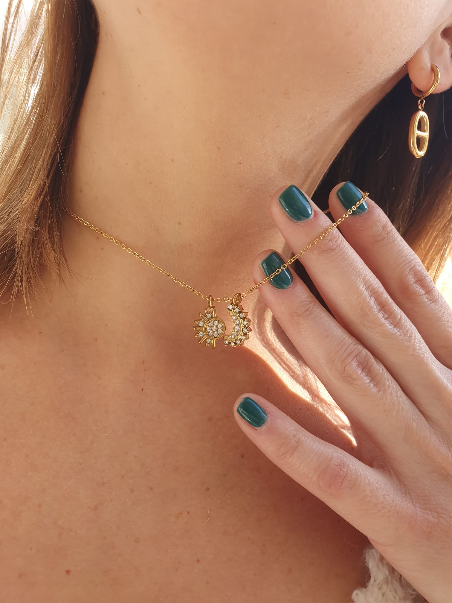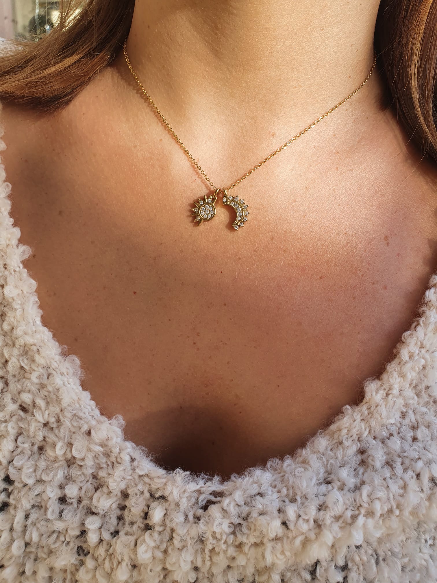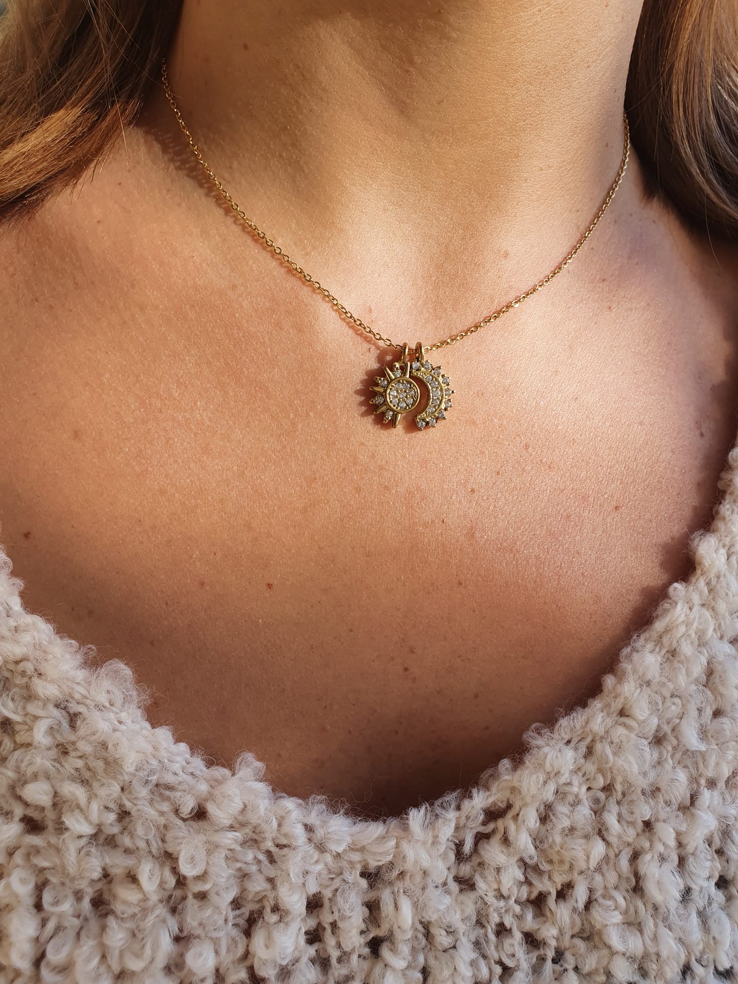 Aurélia Stella – Collier Soleil & Lune en acier inoxydable doré