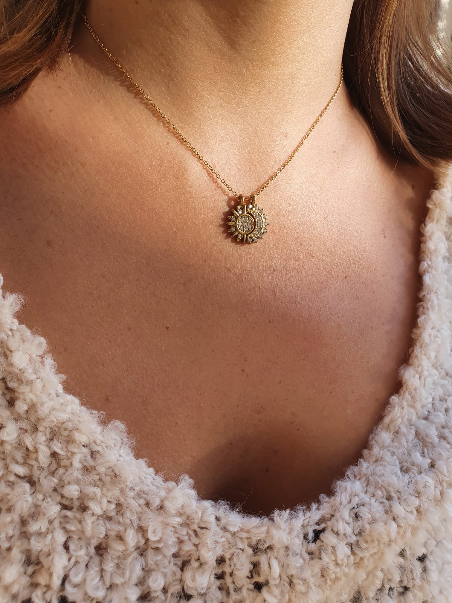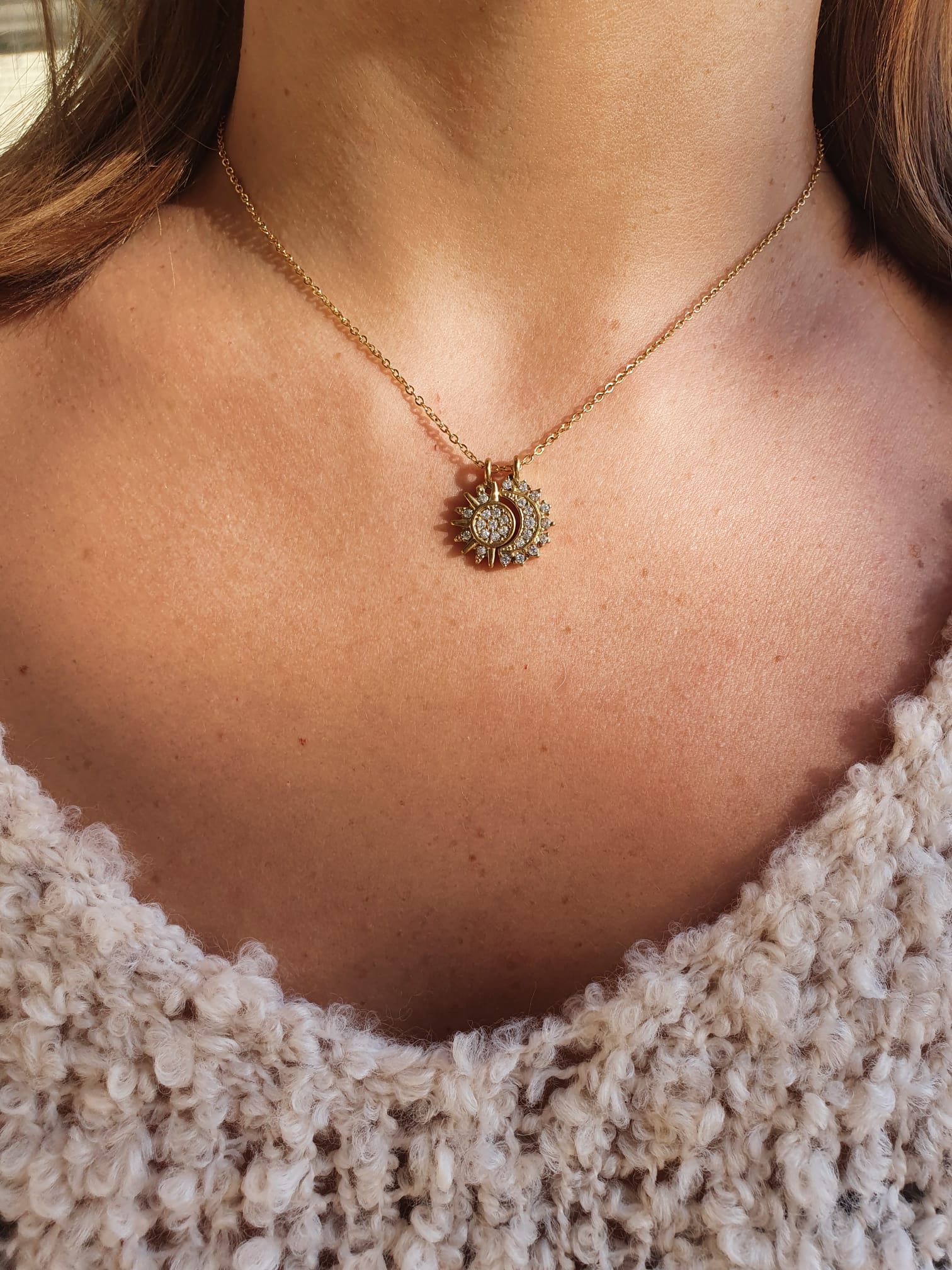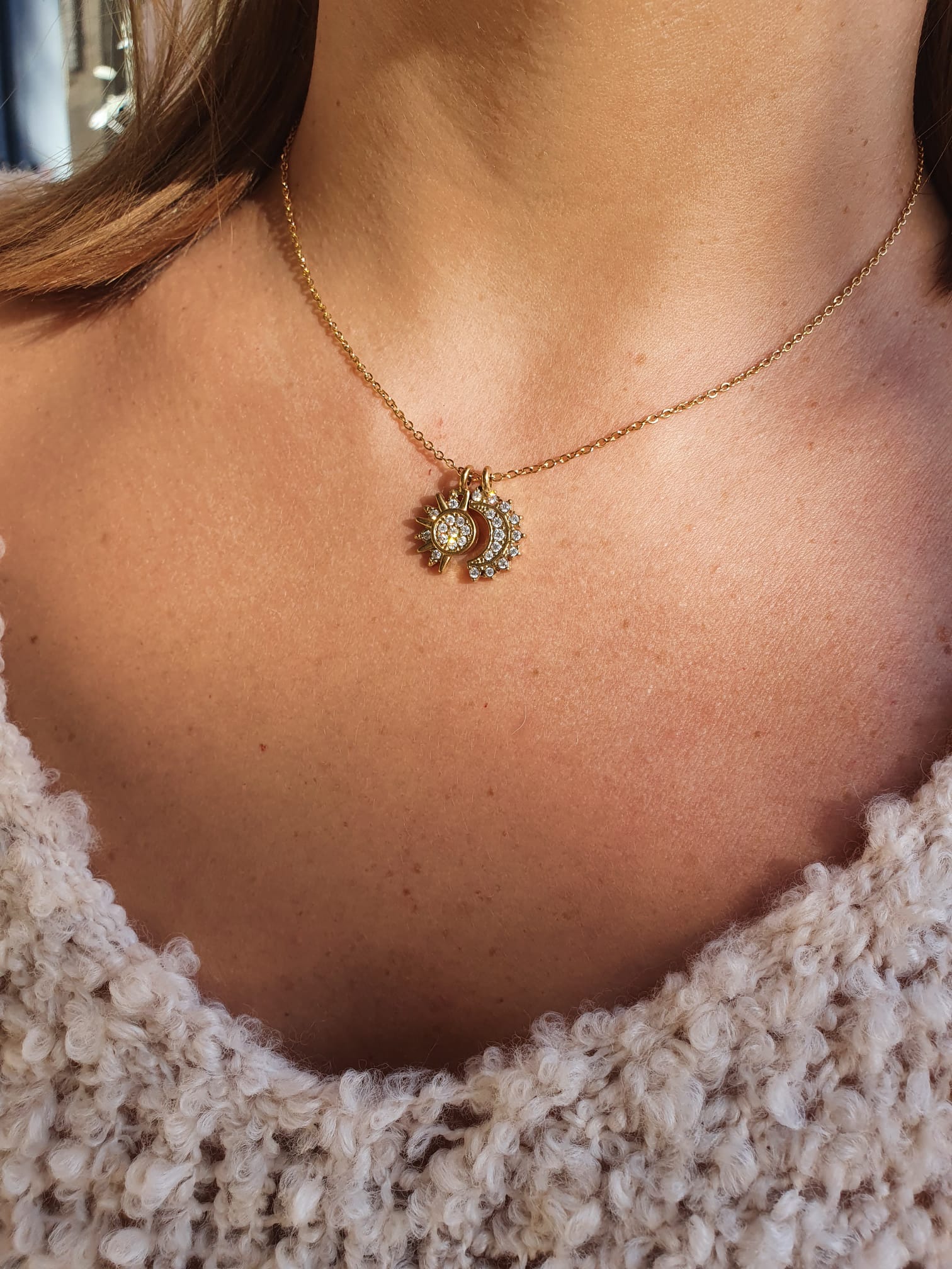 Aurélia Stella – Collier Soleil & Lune en acier inoxydable doré