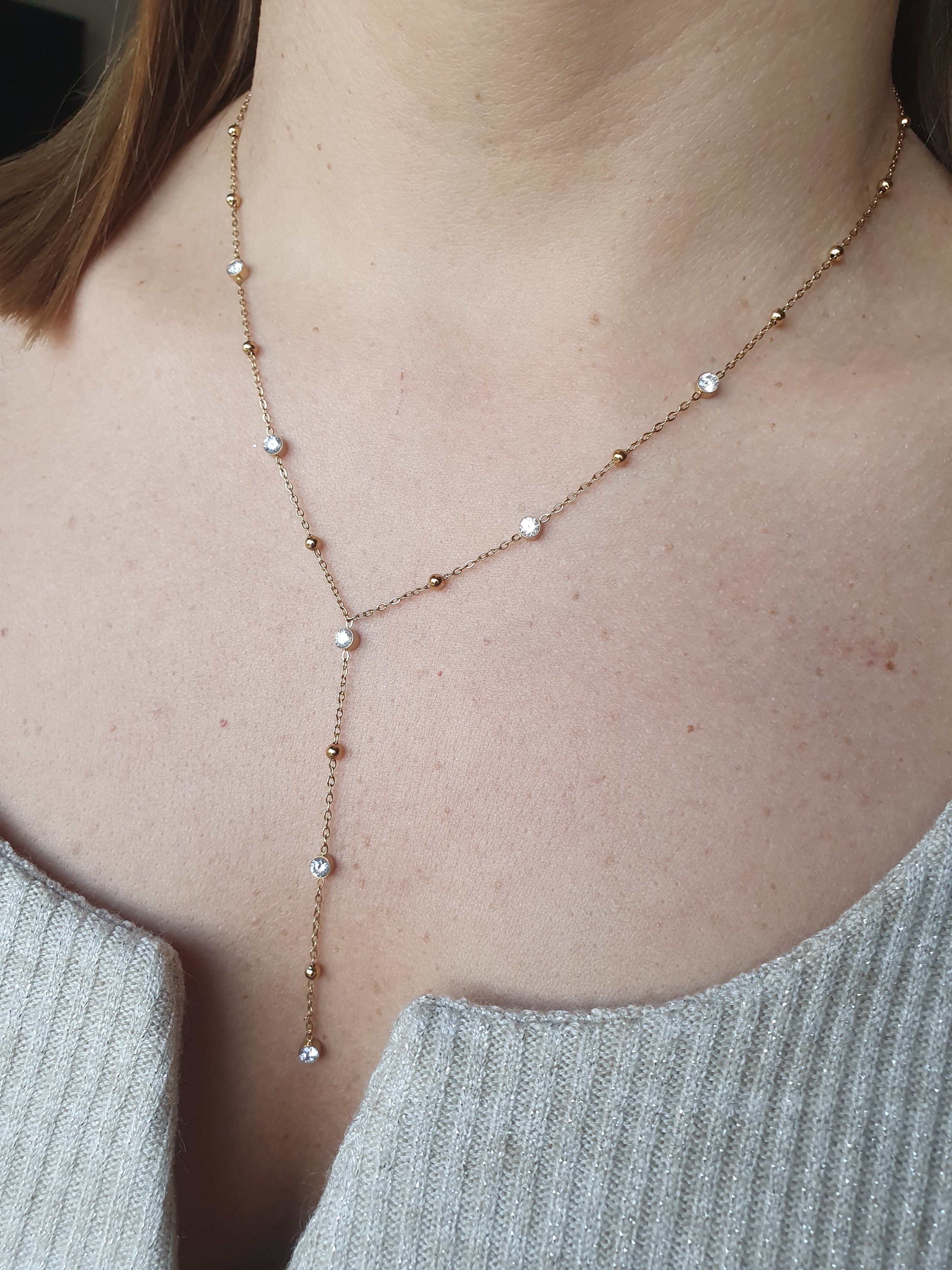 Sautoir zircons & perles - doré