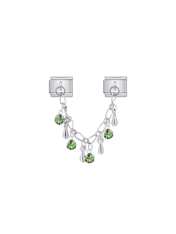 Charm italien double argenté – Strass verts