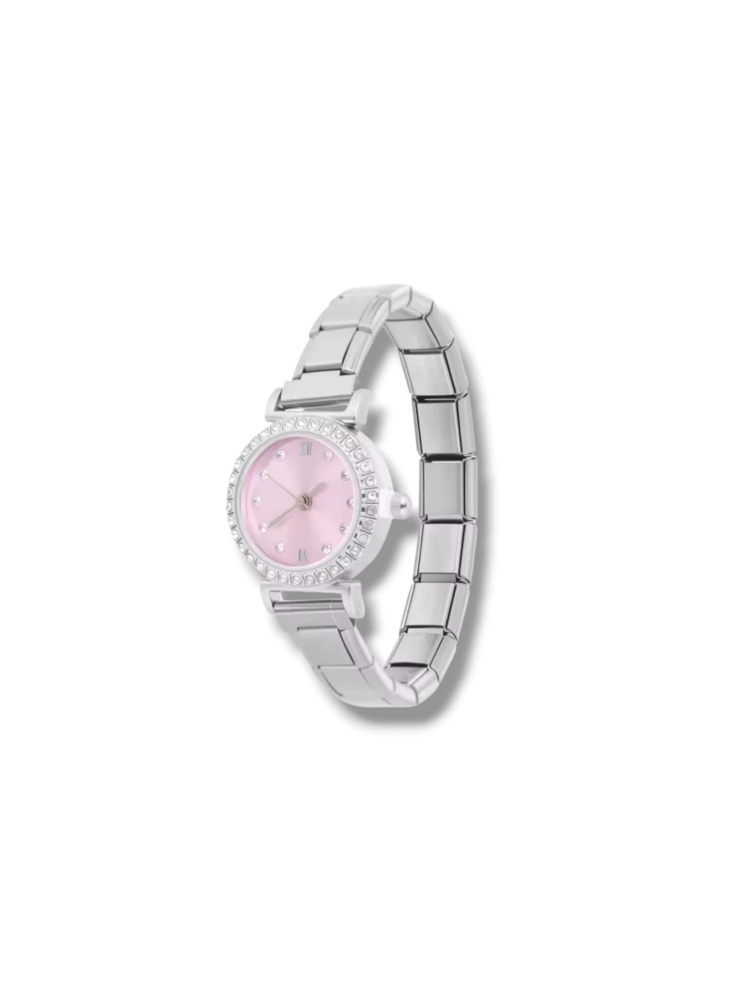 Montre Bracelet Italien Argentée à personnaliser – Cadran Rose