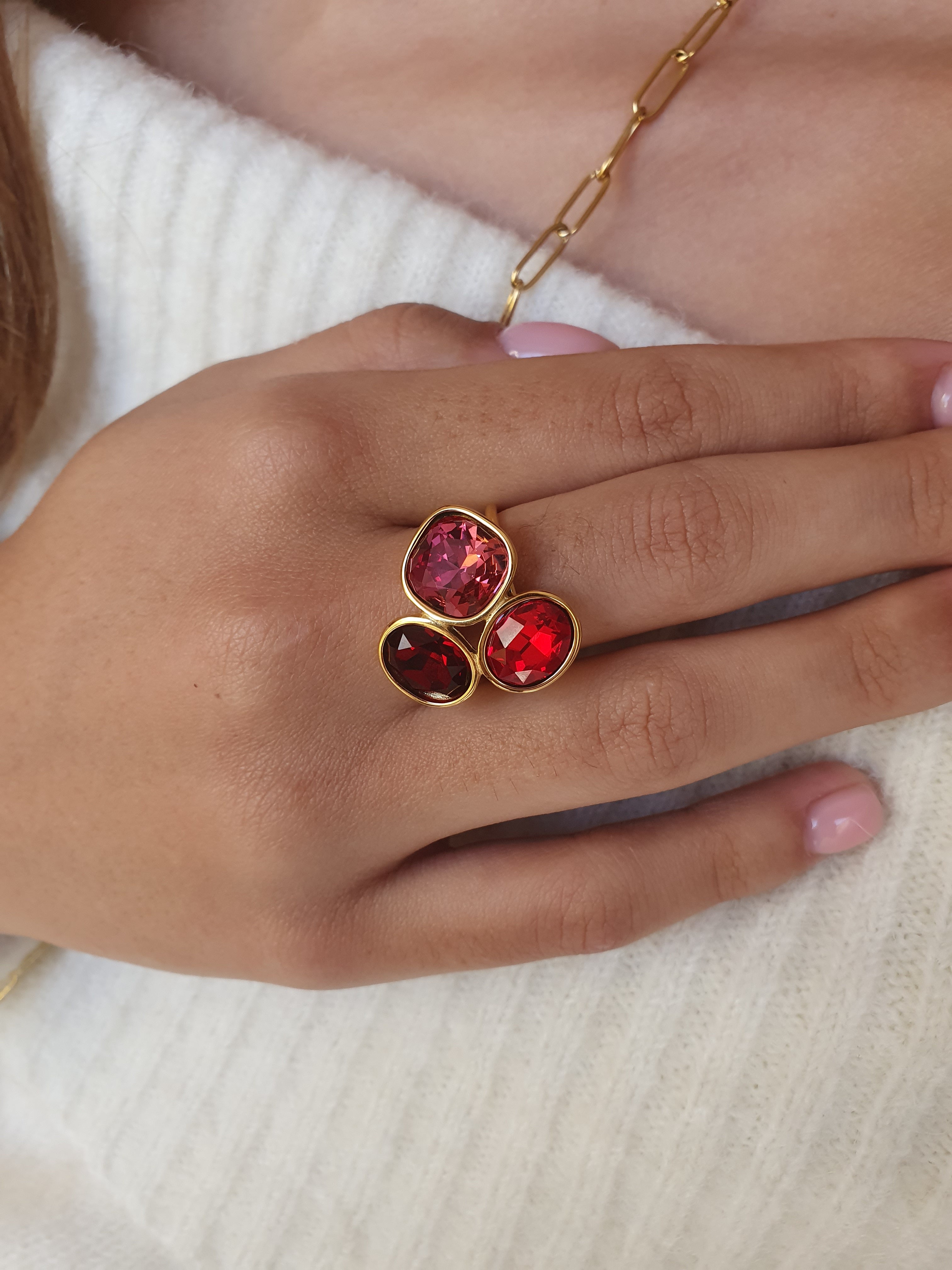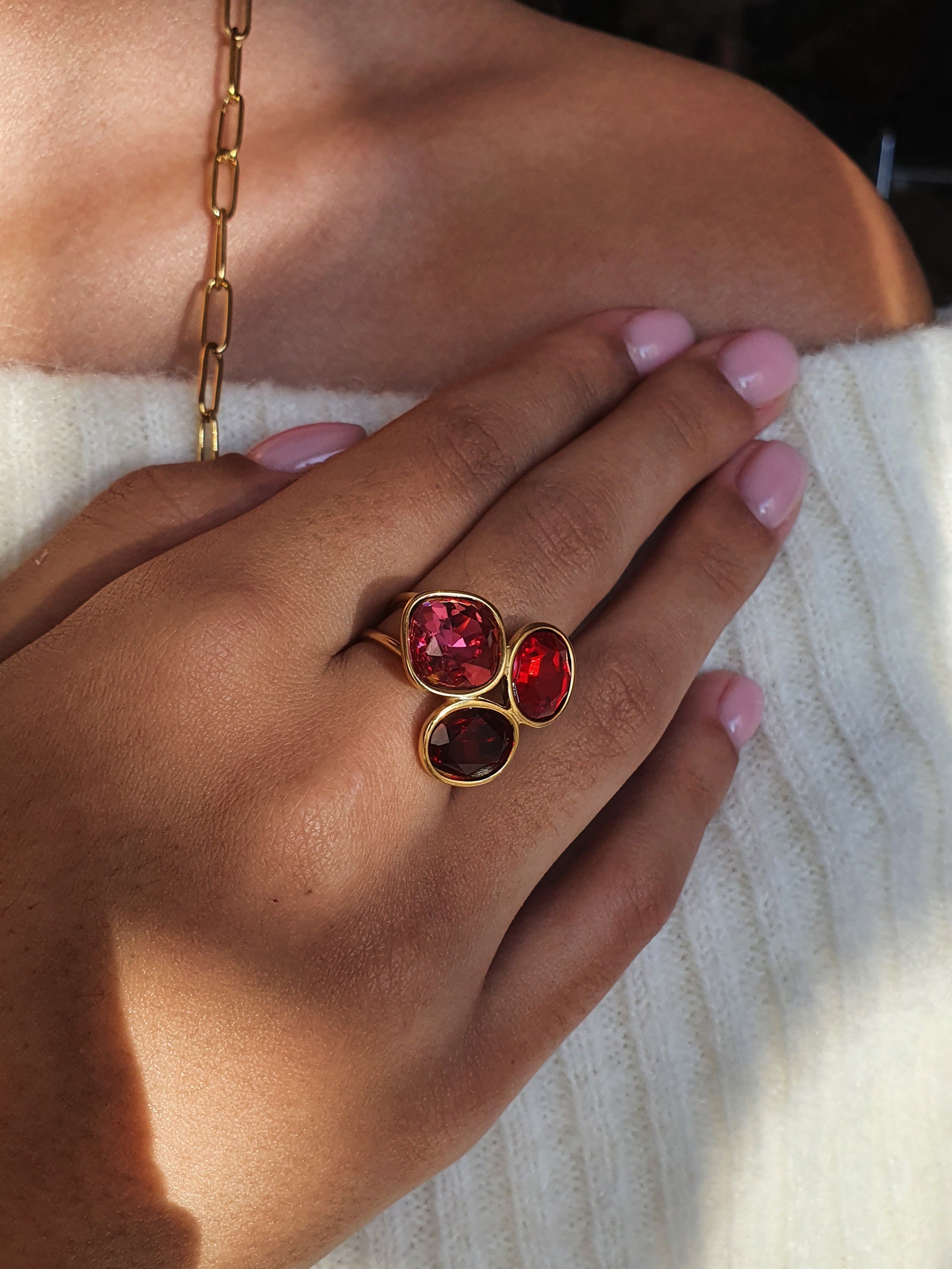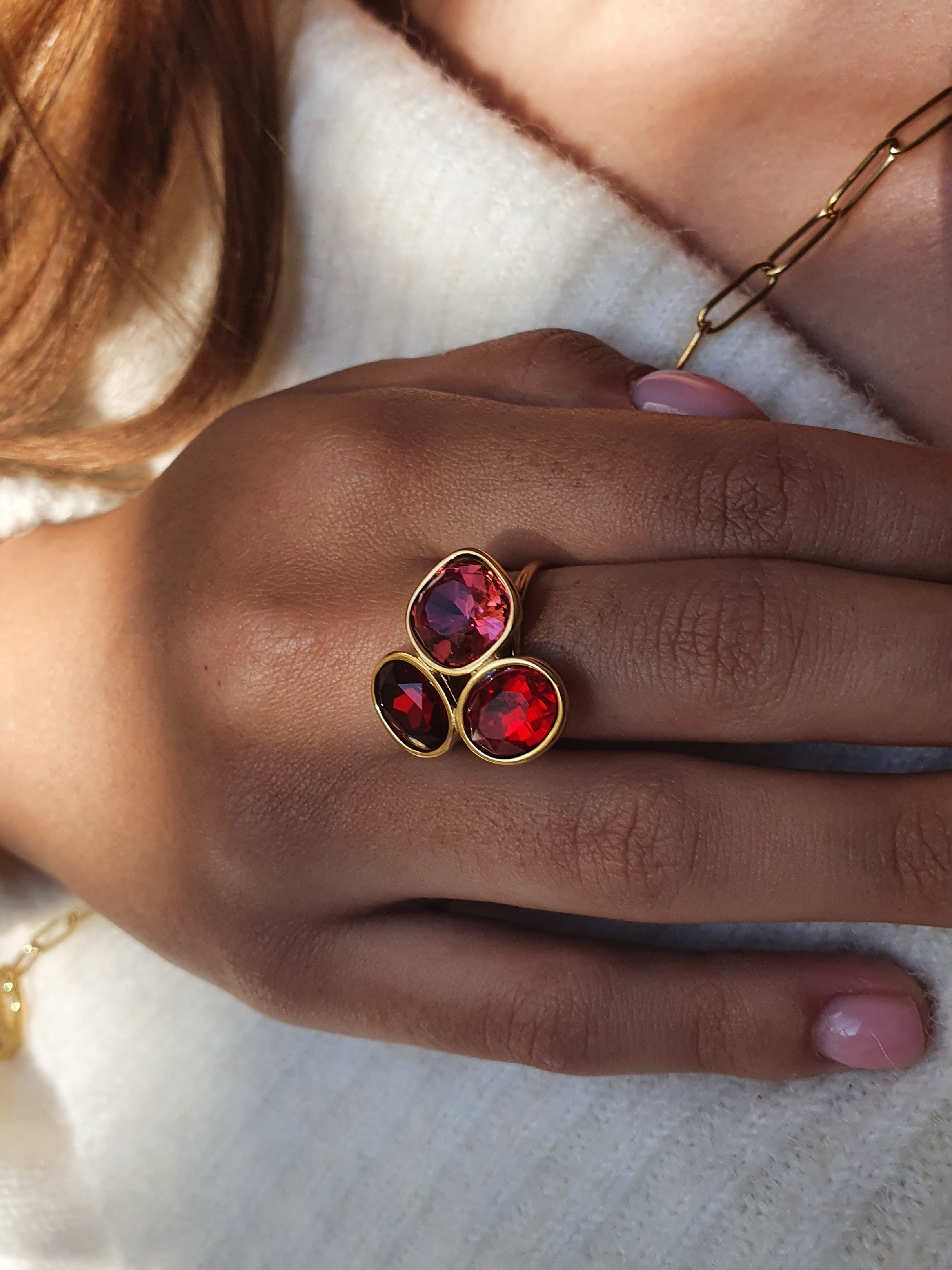 Bague Cristaux d’Hiver - Éclat carmin