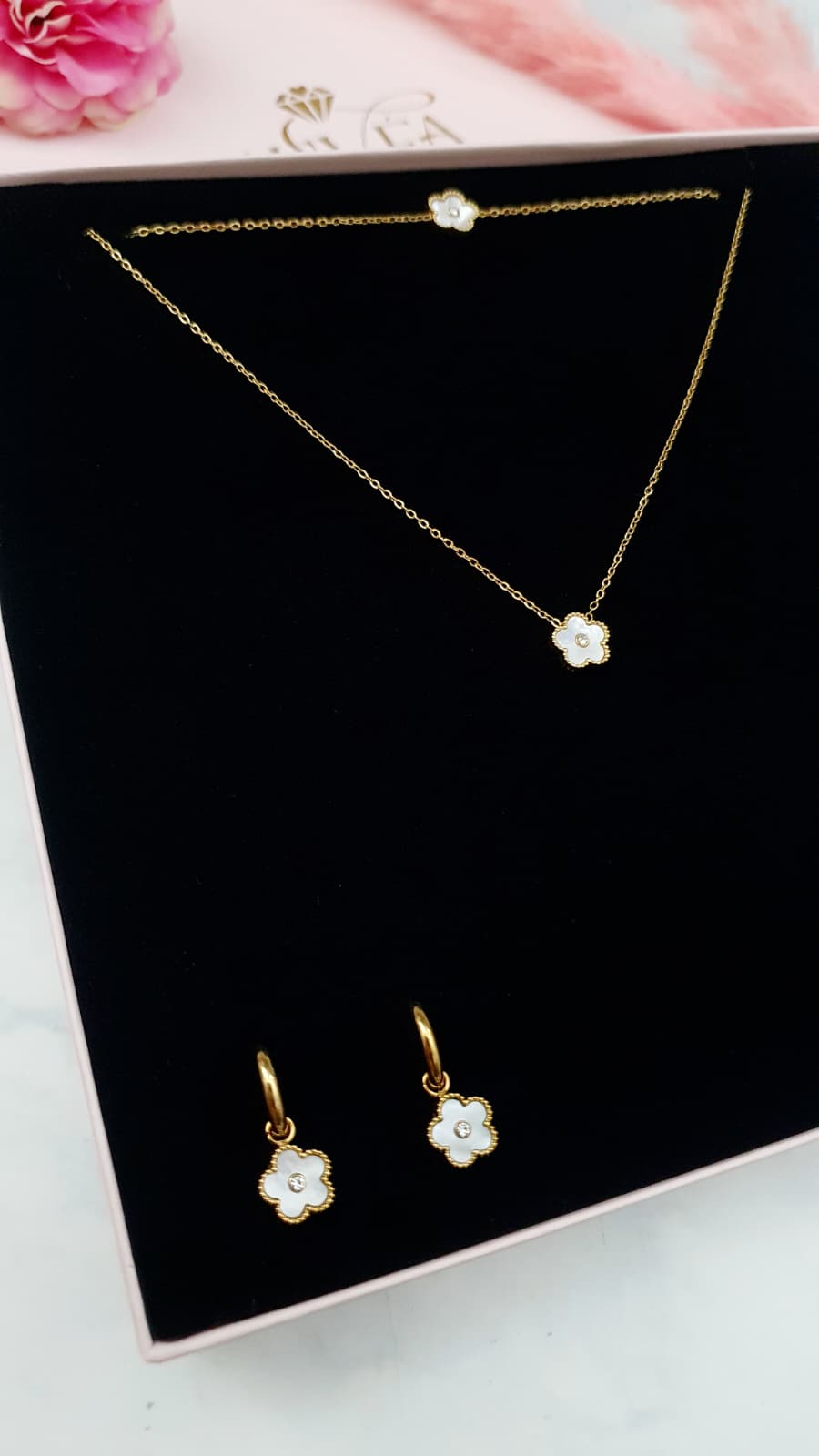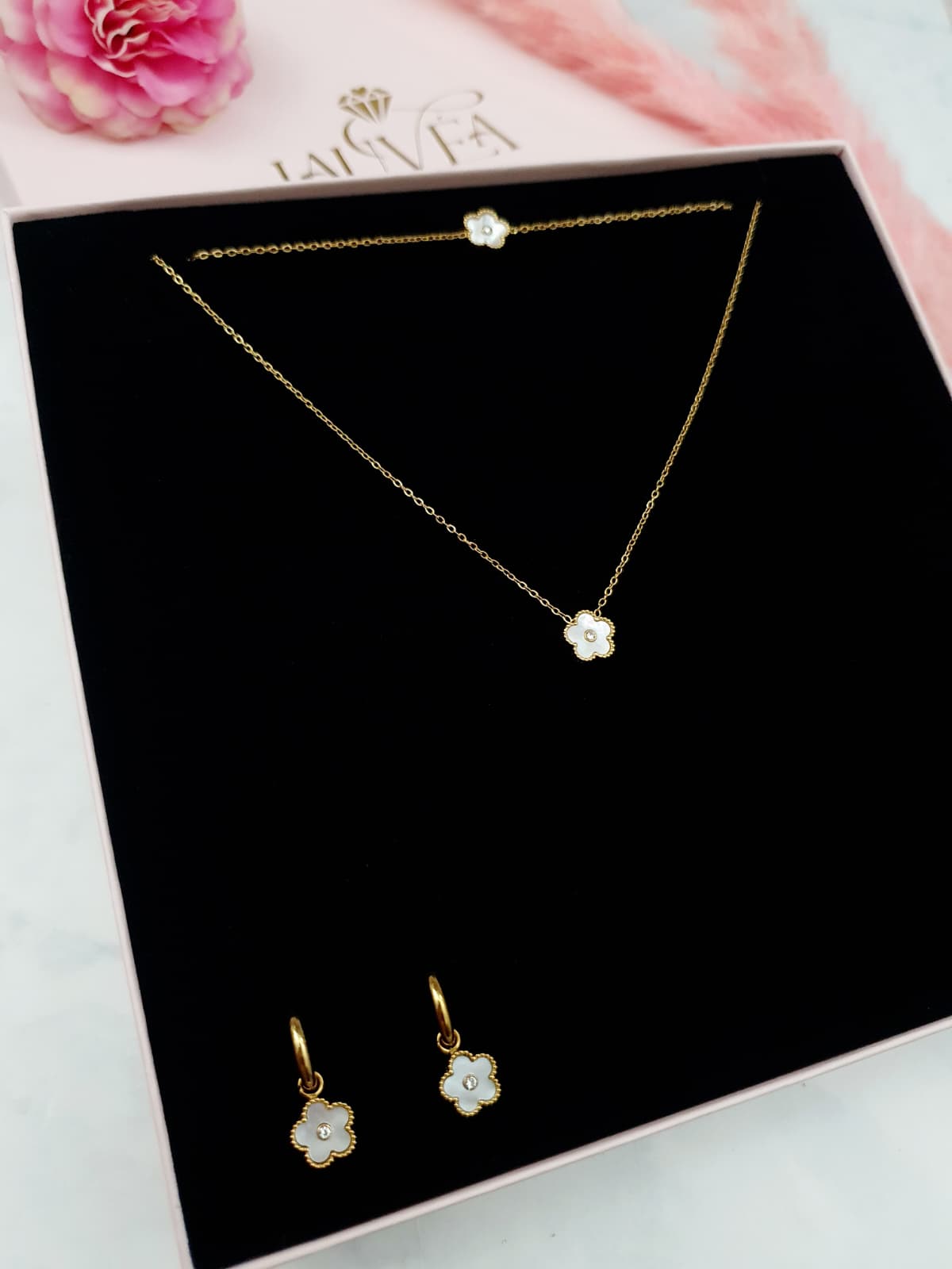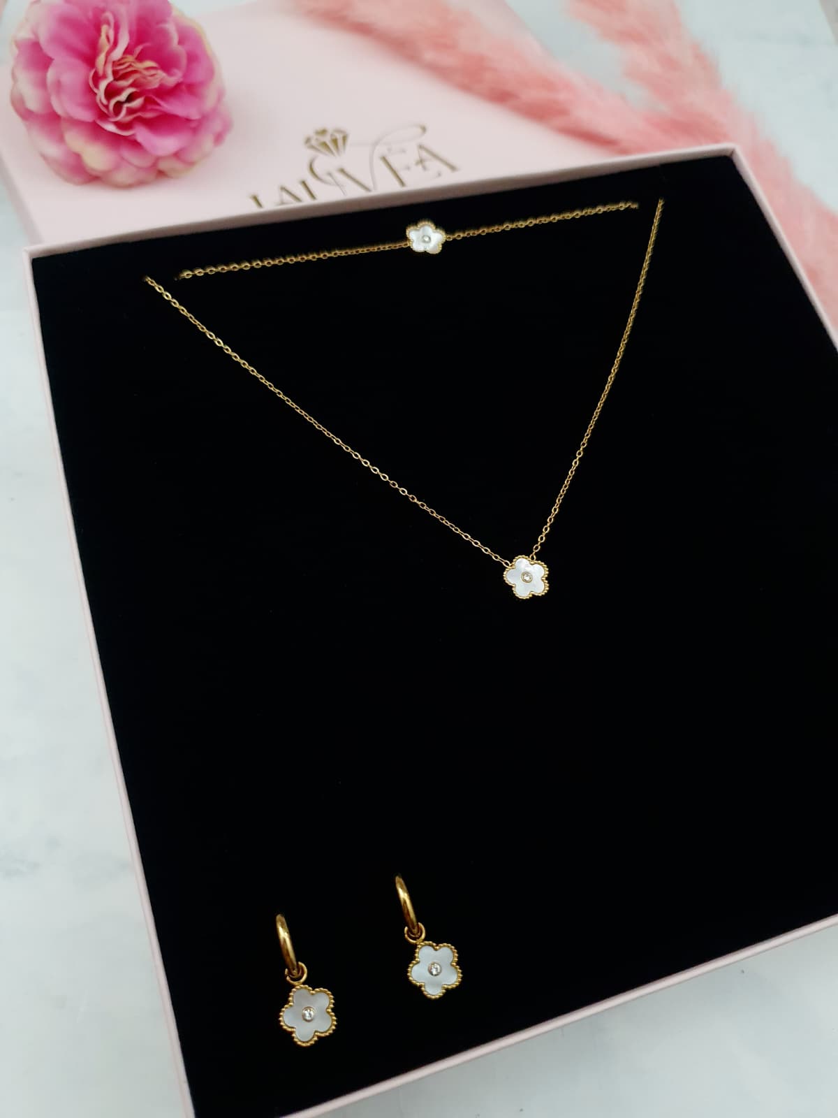 Parure 3 pièces PREMIUM avec écrin Fleurs en nacre - doré