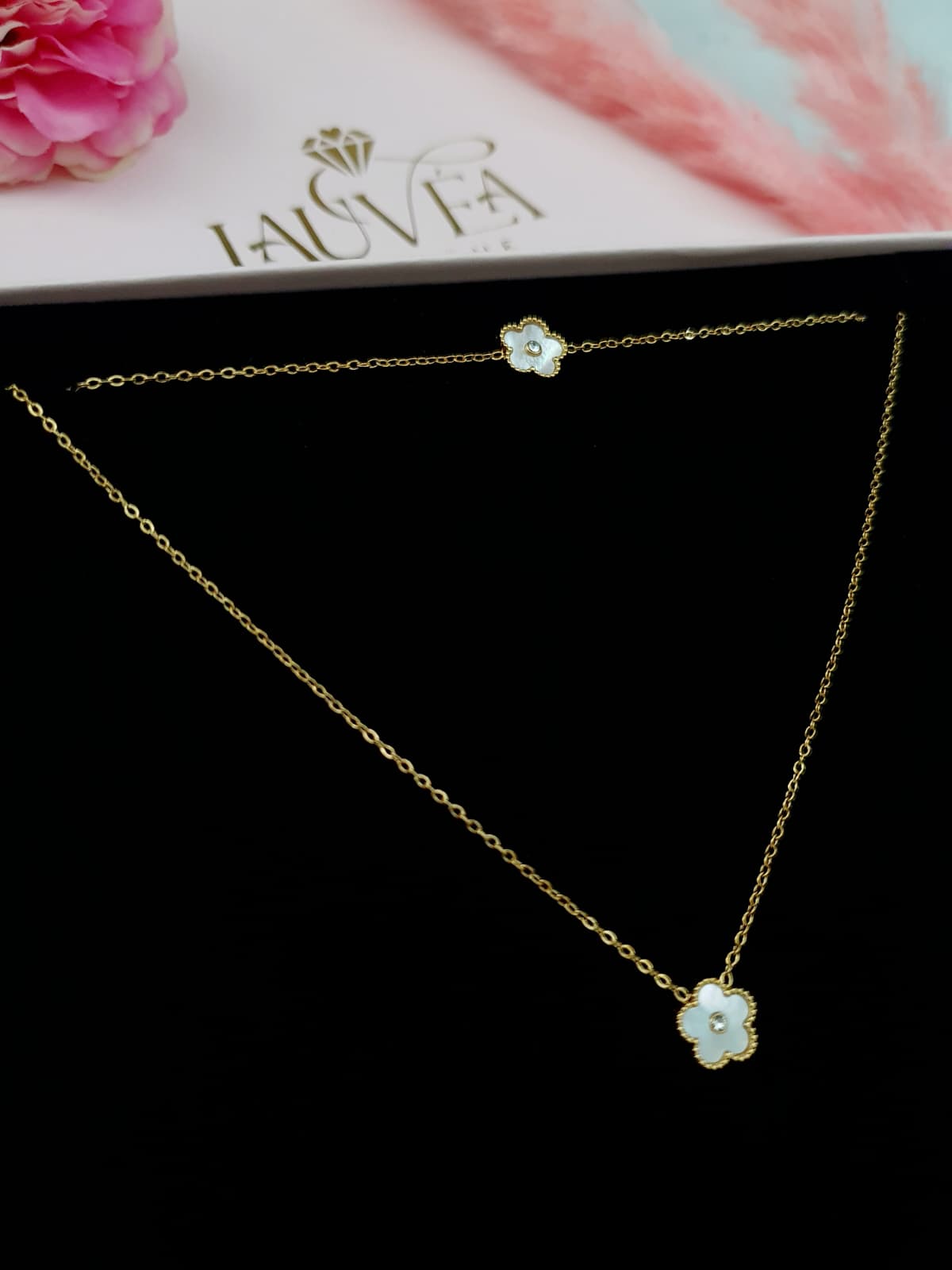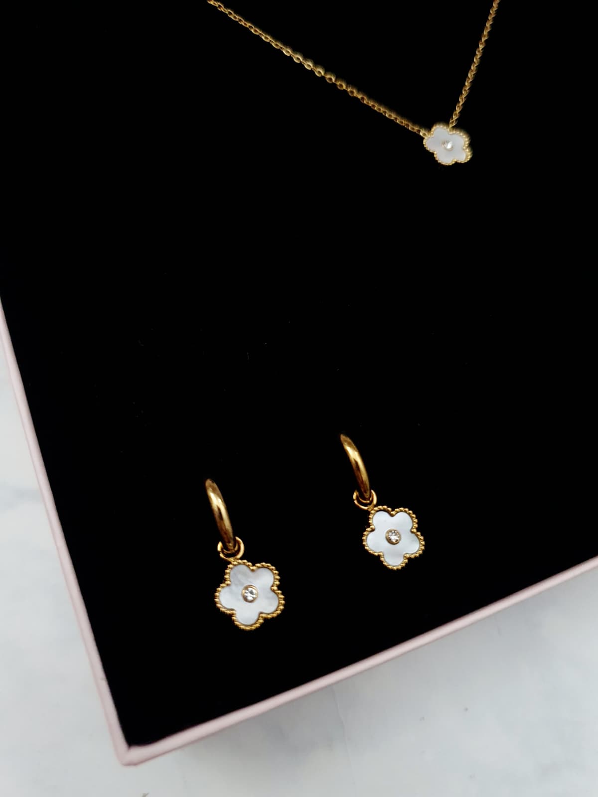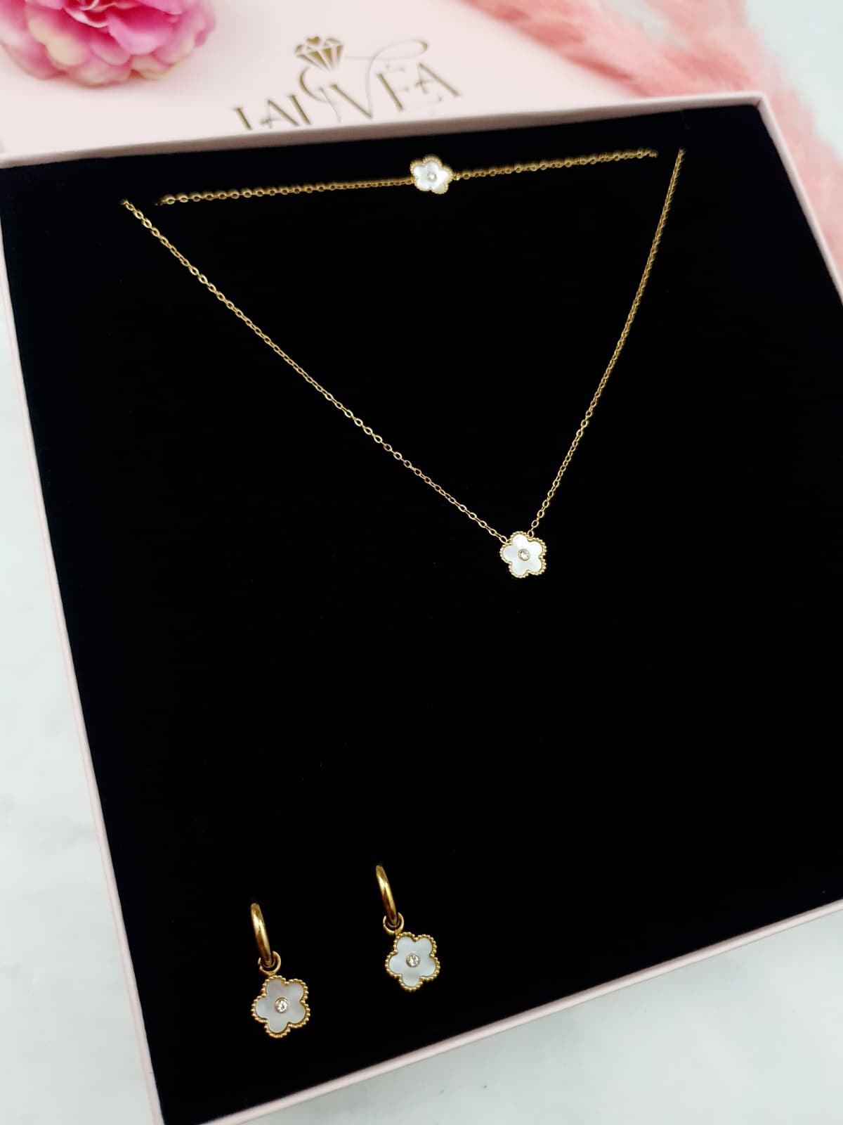 Parure 3 pièces PREMIUM avec écrin Fleurs en nacre - doré