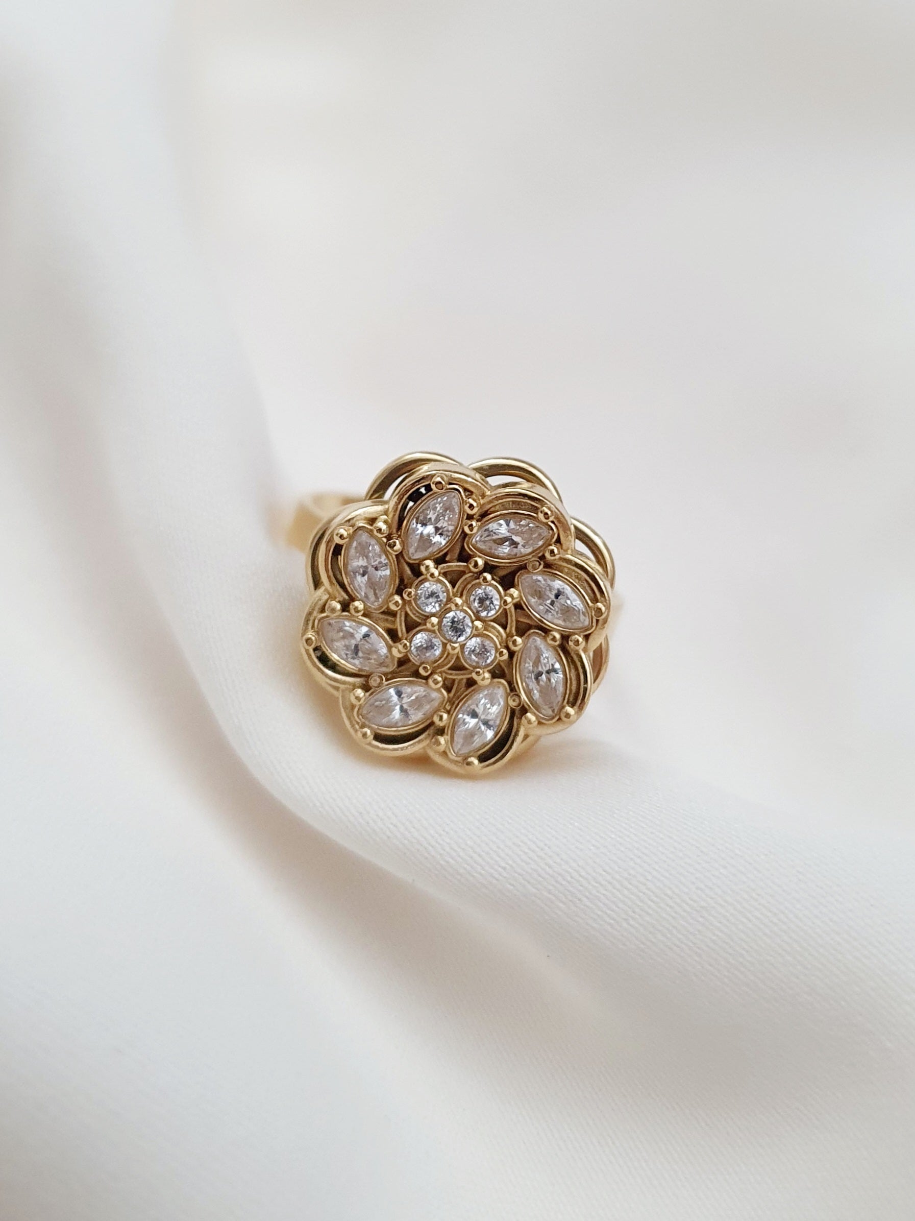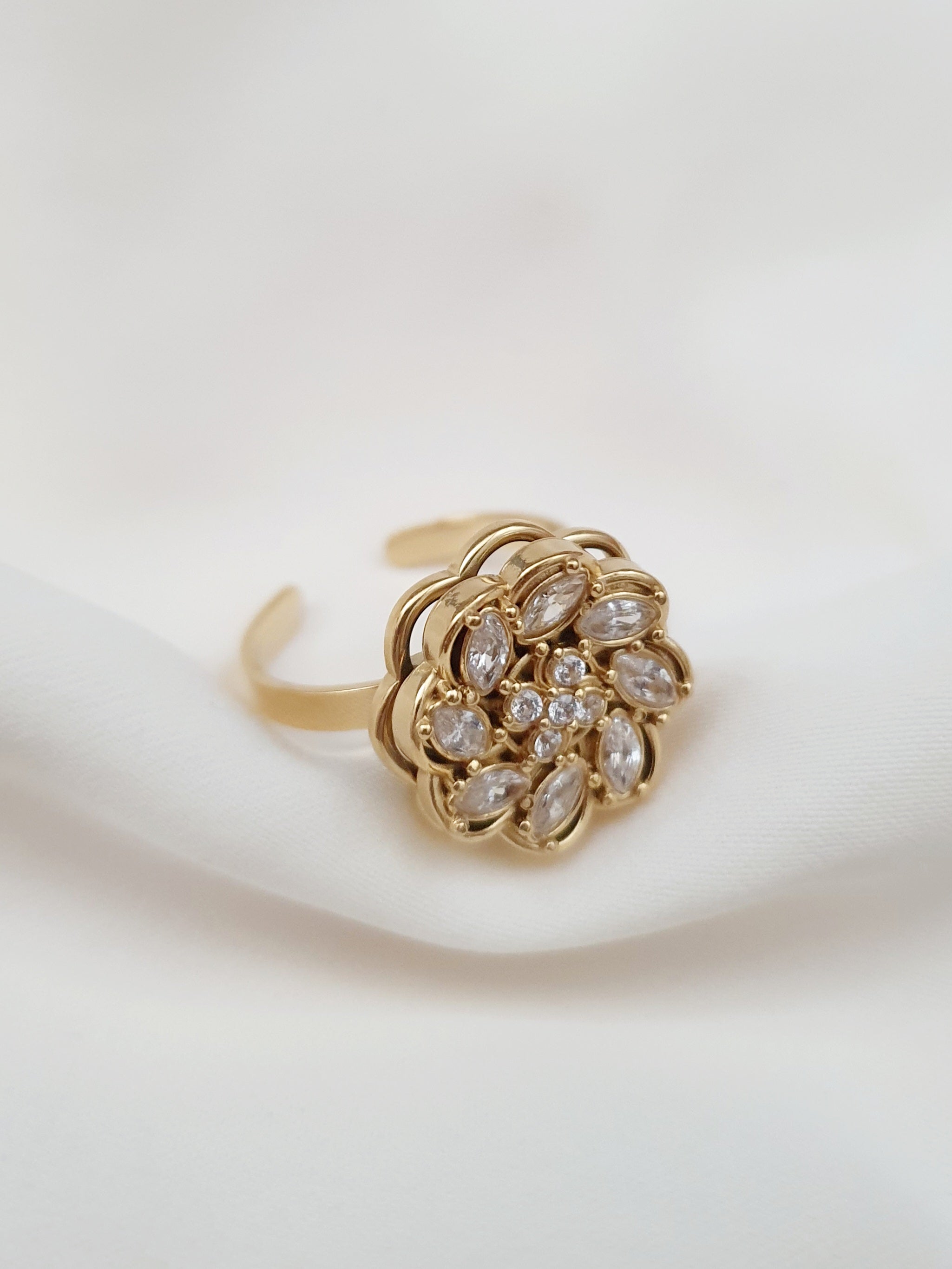 Apaisez votre esprit avec notre bague rotative anti-stress en forme de fleur luxueusement sertie. Conçue en acier inoxydable et ornée de pierres étincelantes, cette bague est bien plus qu’un simple bijou : c’est un accessoire bien-être à porter au quotidien dont vous ne pourrez plus vous passer !