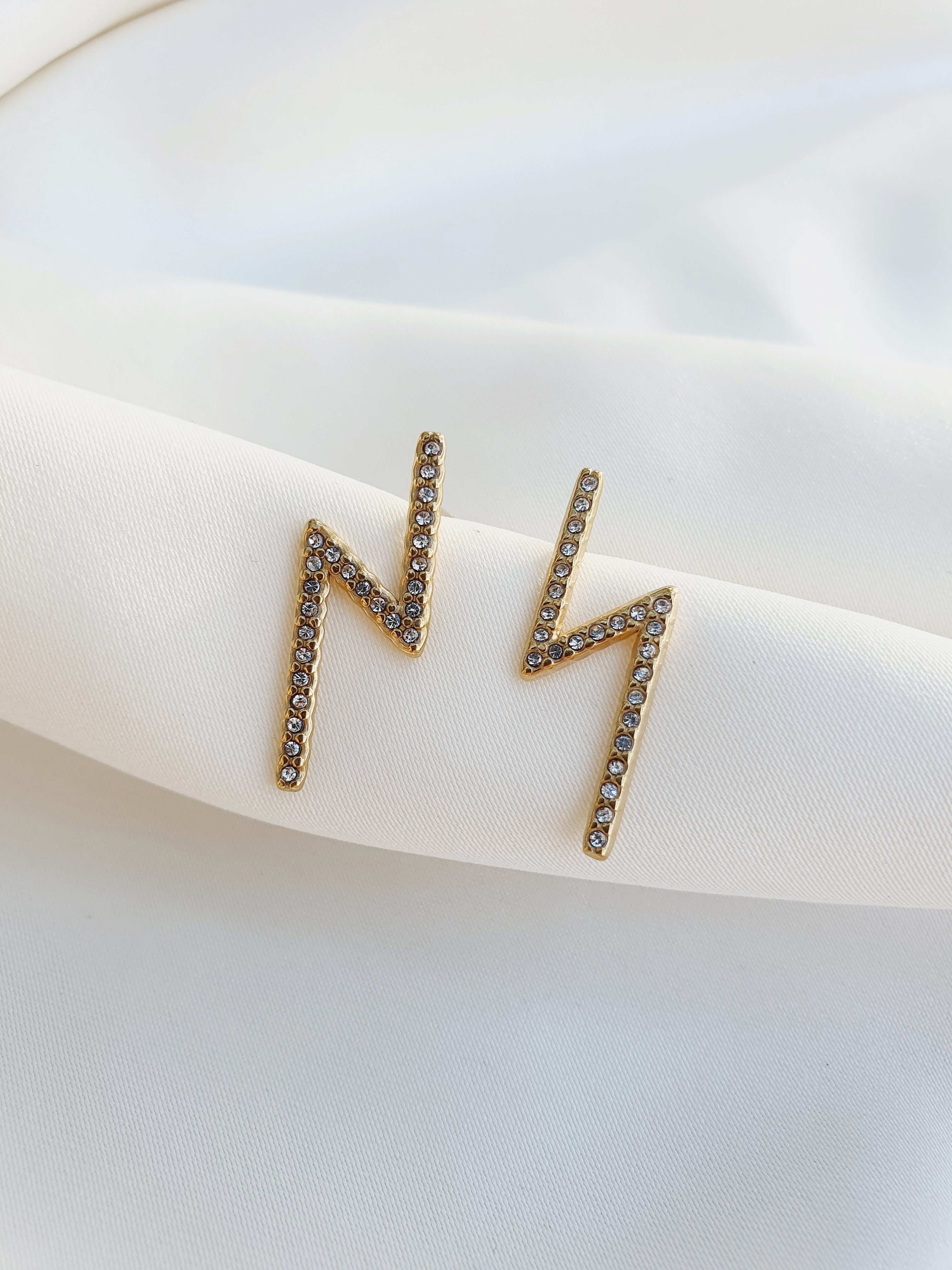 Succombez à nos incroyables boucles d'oreilles acier inoxydable en forme d'éclairs avec zircons