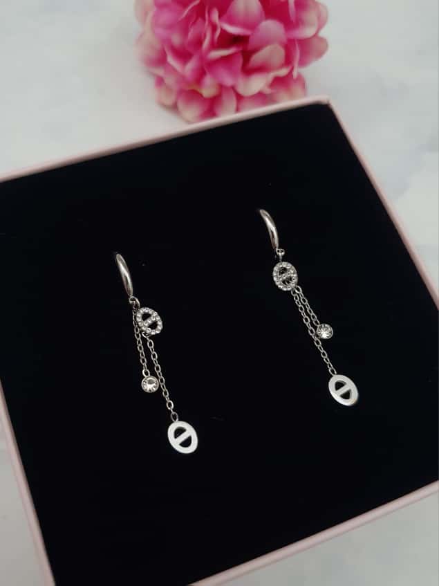 Boucles d'oreilles pendantes maille marine et zircons - argenté
