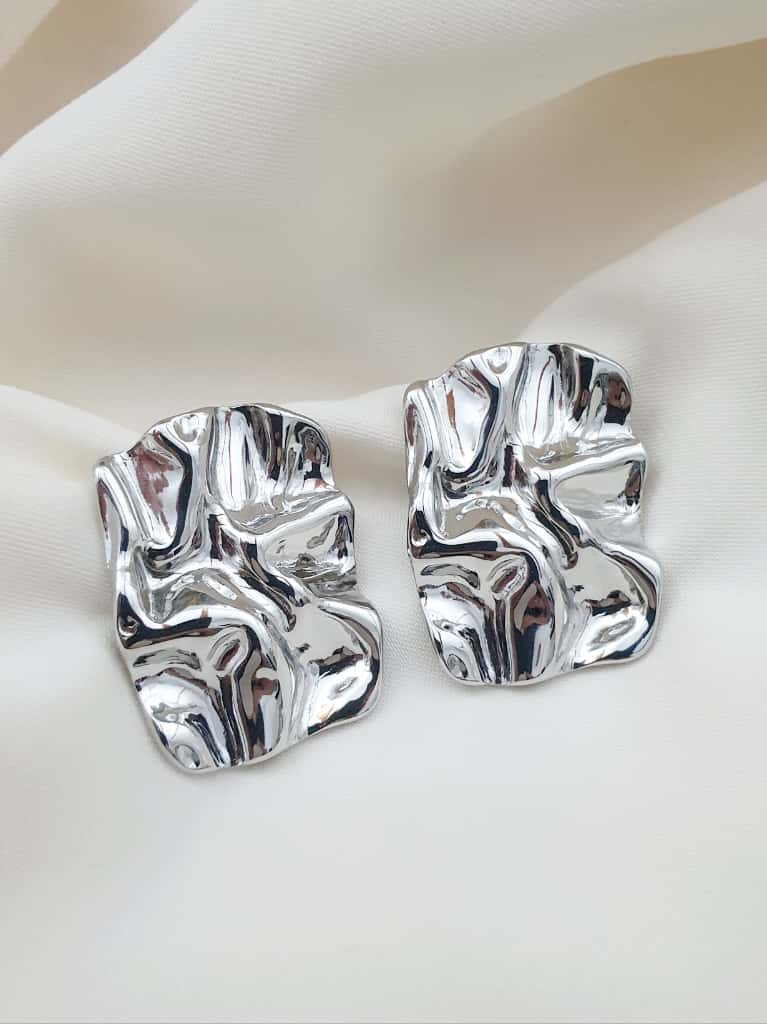 Les boucles Rhea jouent la carte de l’originalité avec leur design “métal froissé”. Leur forme irrégulière, volontairement sculpturale, crée un effet couture très tendance.