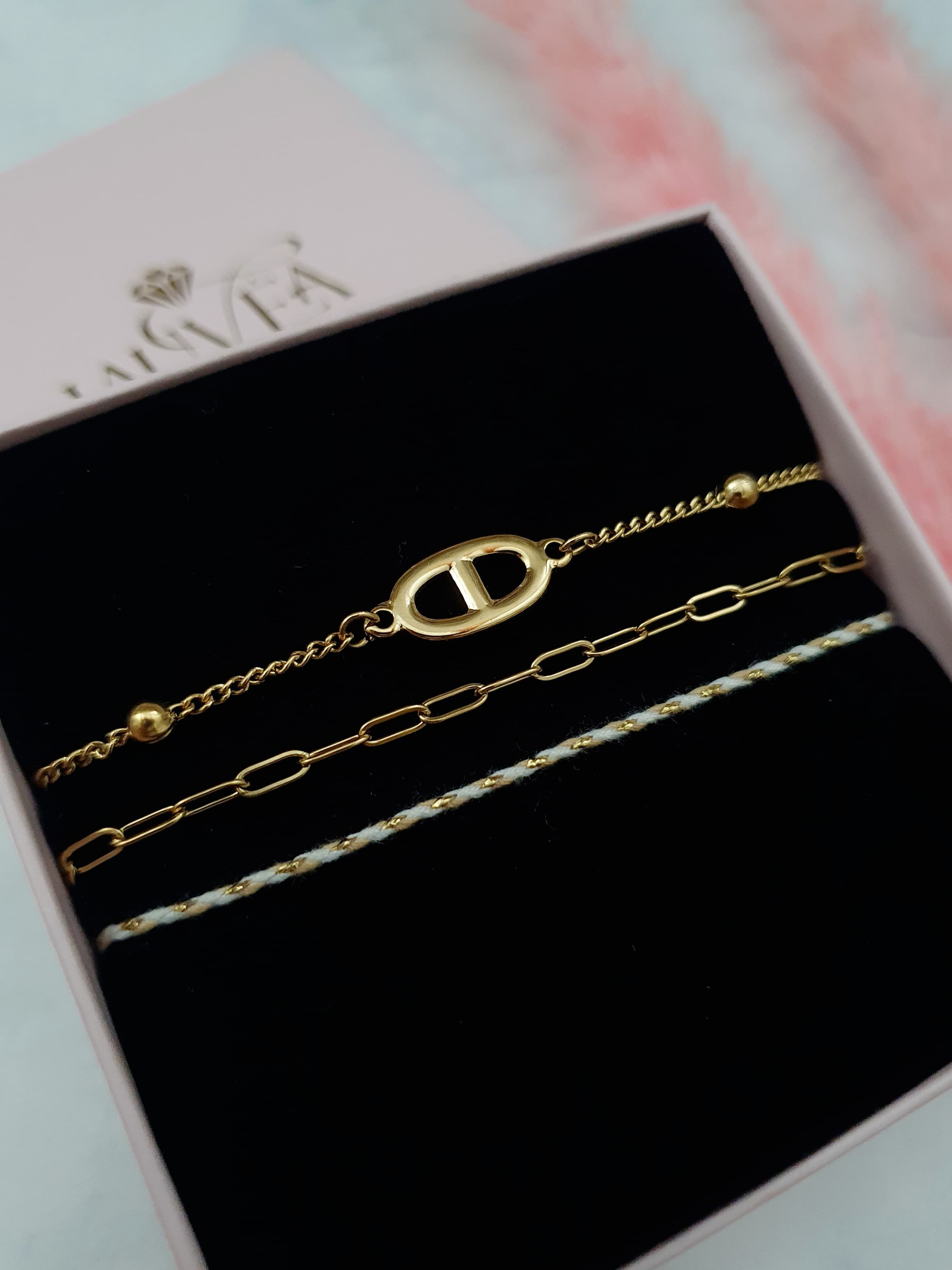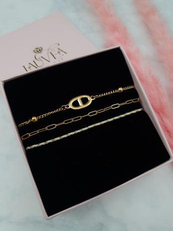 Trio de bracelet maille marine - doré/blanc