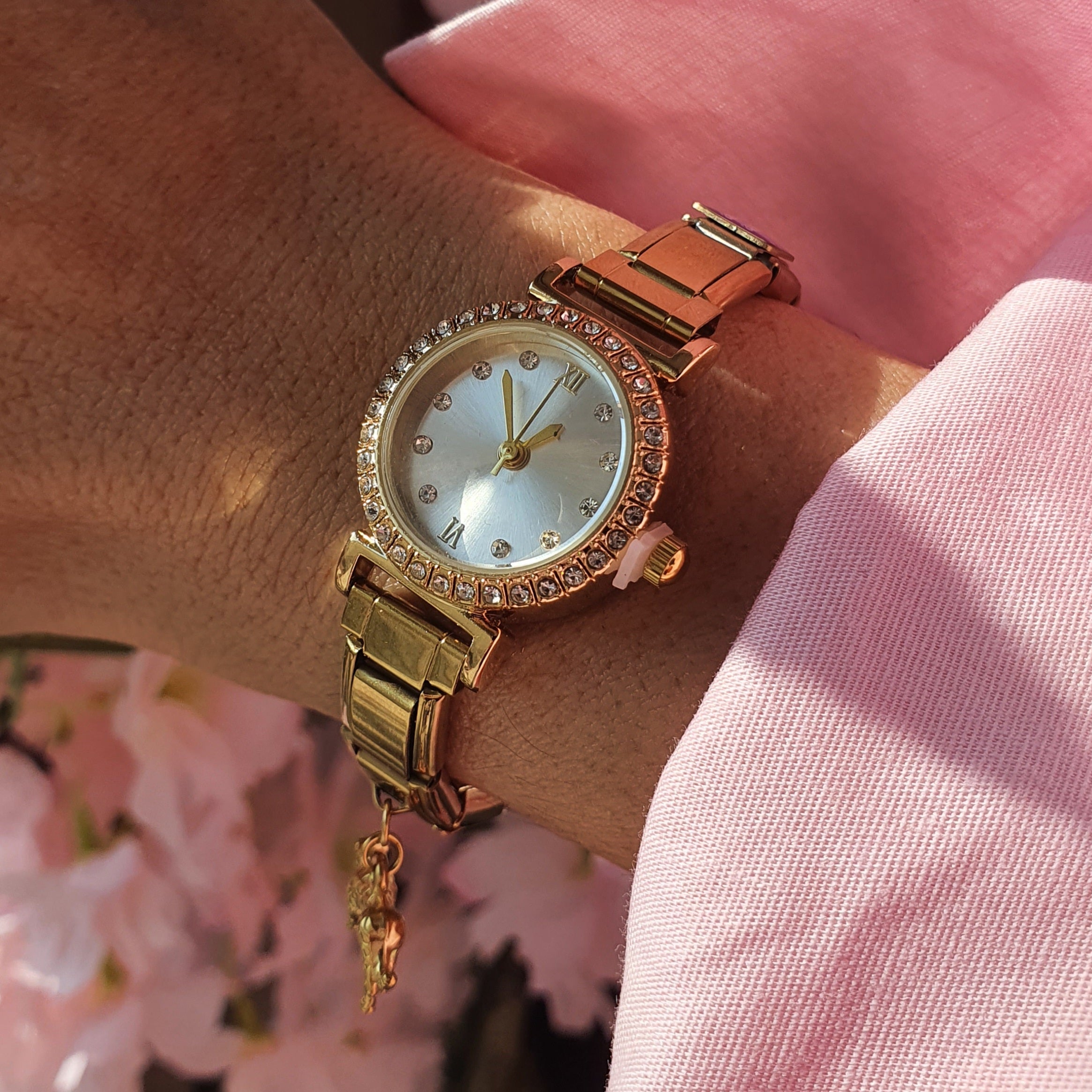 Montre Bracelet Italien à personnaliser – CHRONA – Dorée (cadran rose)