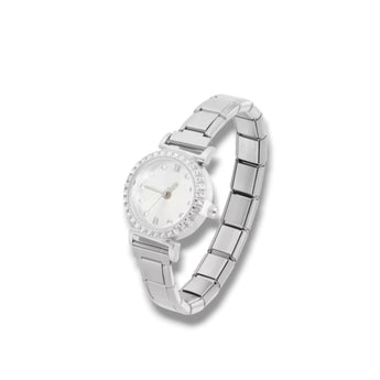 Montre Bracelet Italien à personnaliser – CHRONA – Argenté (cadran blanc)