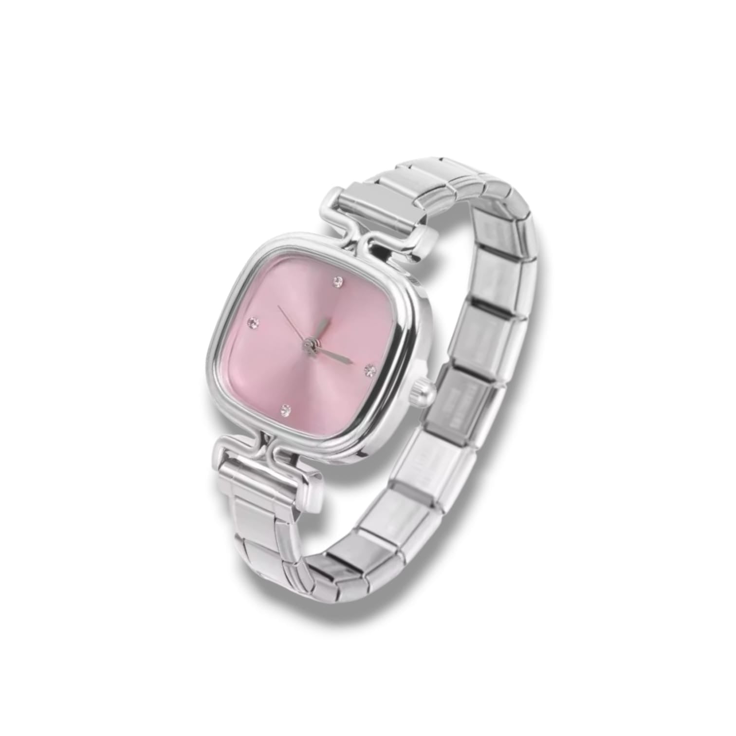 Montre Bracelet Italien à personnaliser – KAIROS - Argentée (cadran rose)