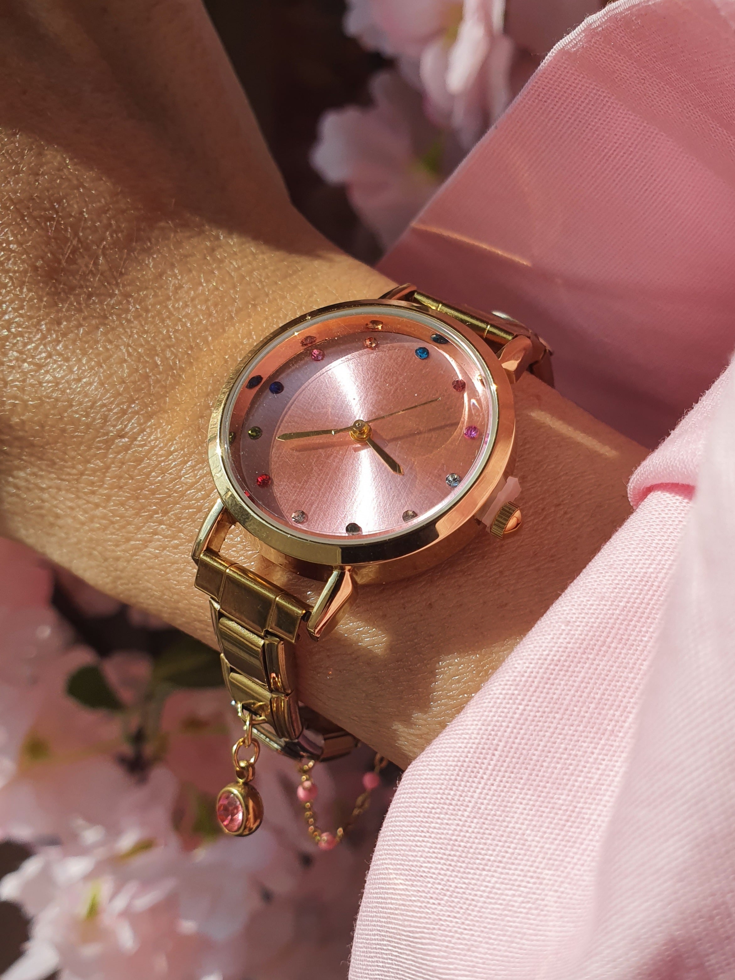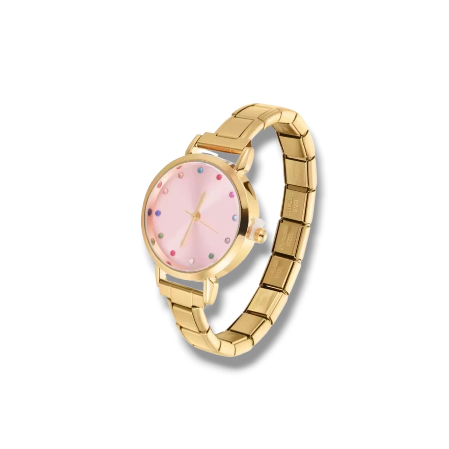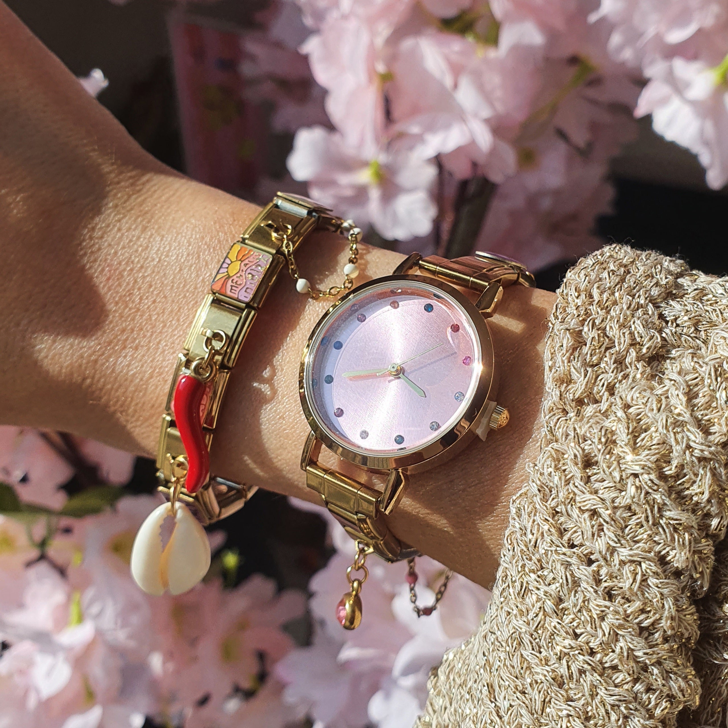 Montre Bracelet Italien à personnaliser – TEMIS – Dorée (cadran rose)