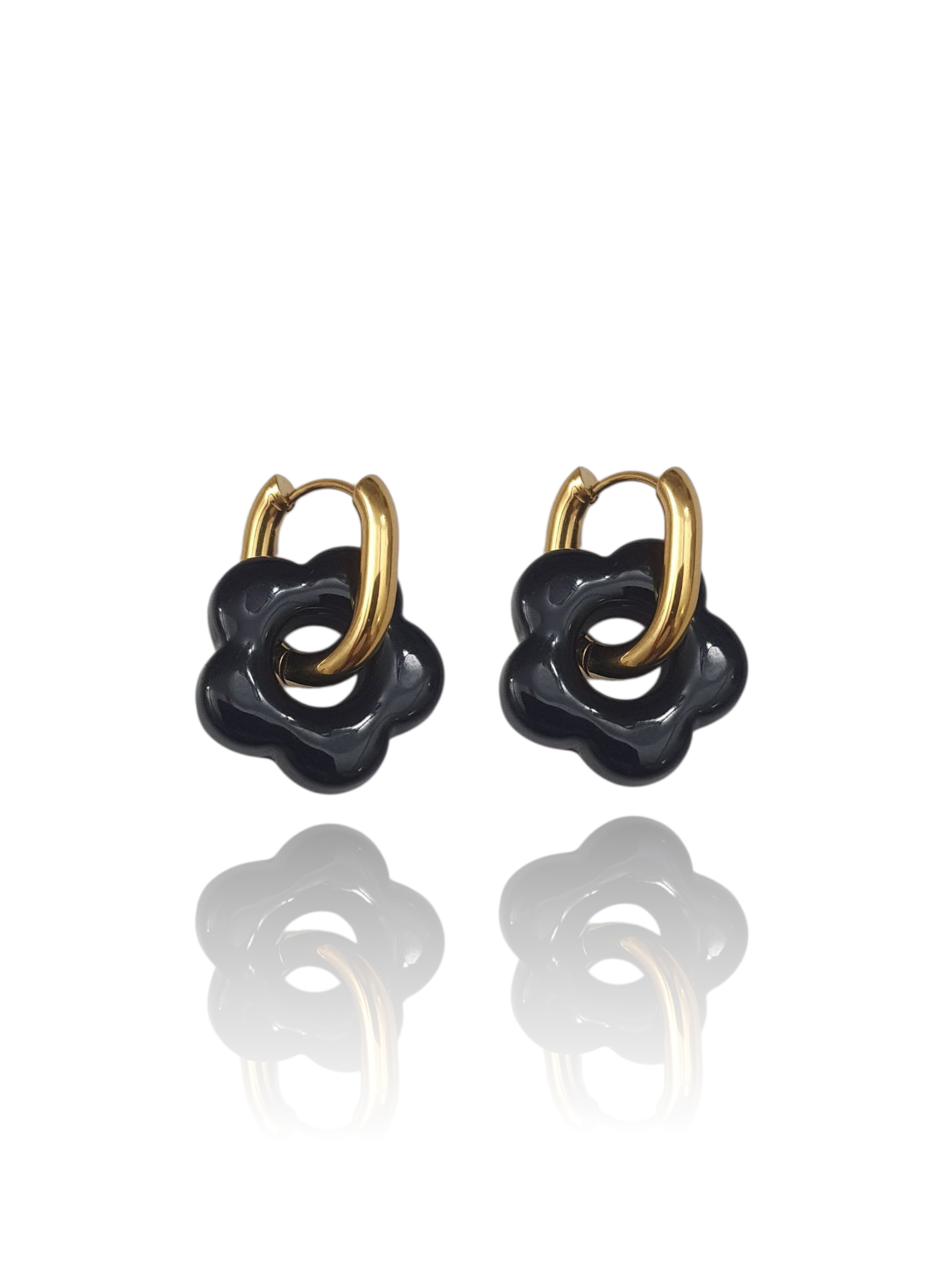 Baby boucles d'oreilles fleurs - doré | Noir intense