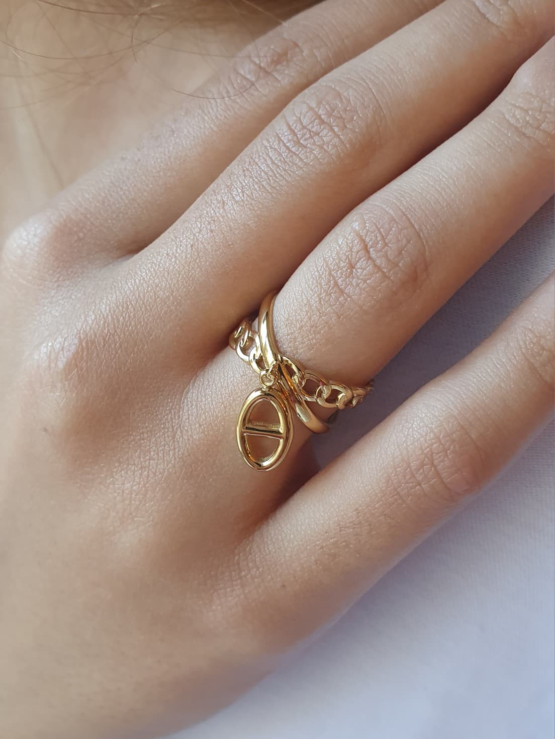 Magnifique bague en acier inoxydable orné d'une breloque également composée en acier inoxydable.