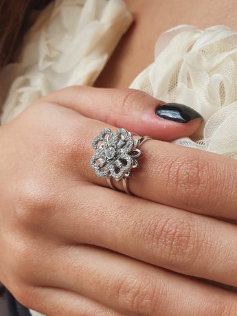 • Motif central élégant à pétales sertis, au design moderne et lumineux