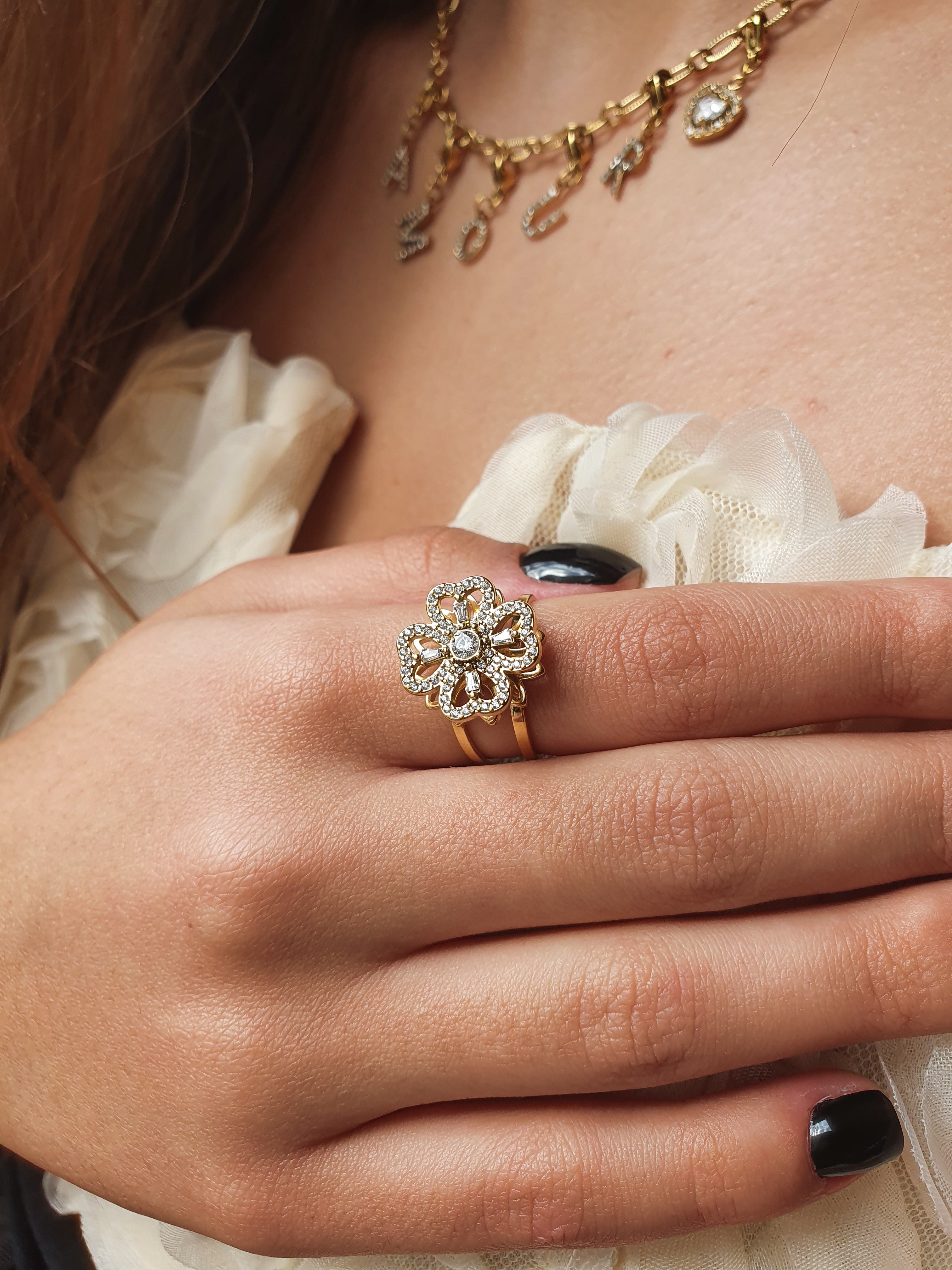 • Motif central élégant à pétales sertis, au design moderne et lumineux