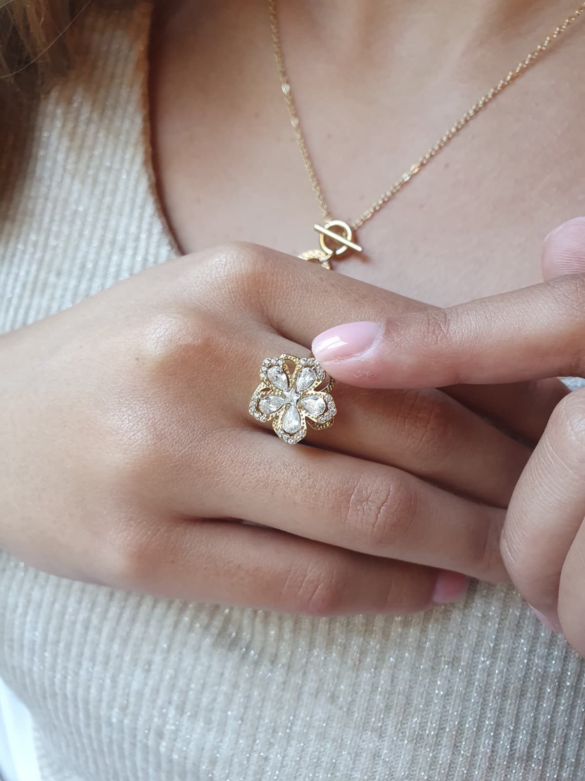 Apaisez votre esprit avec notre bague rotative anti-stress en forme de fleur luxueusement sertie. Conçue en acier inoxydable et ornée de pierres étincelantes, cette bague est bien plus qu’un simple bijou : c’est un accessoire bien-être à porter au quotidien dont vous ne pourrez plus vous passer !
