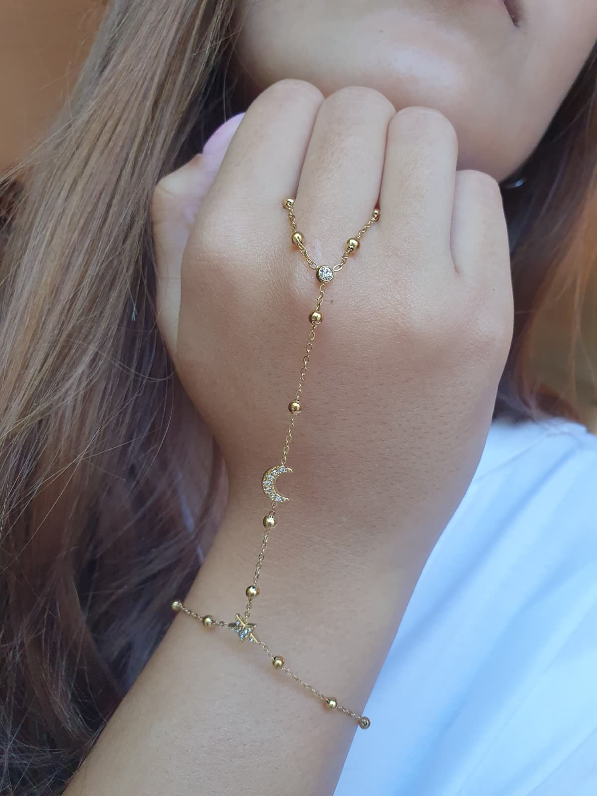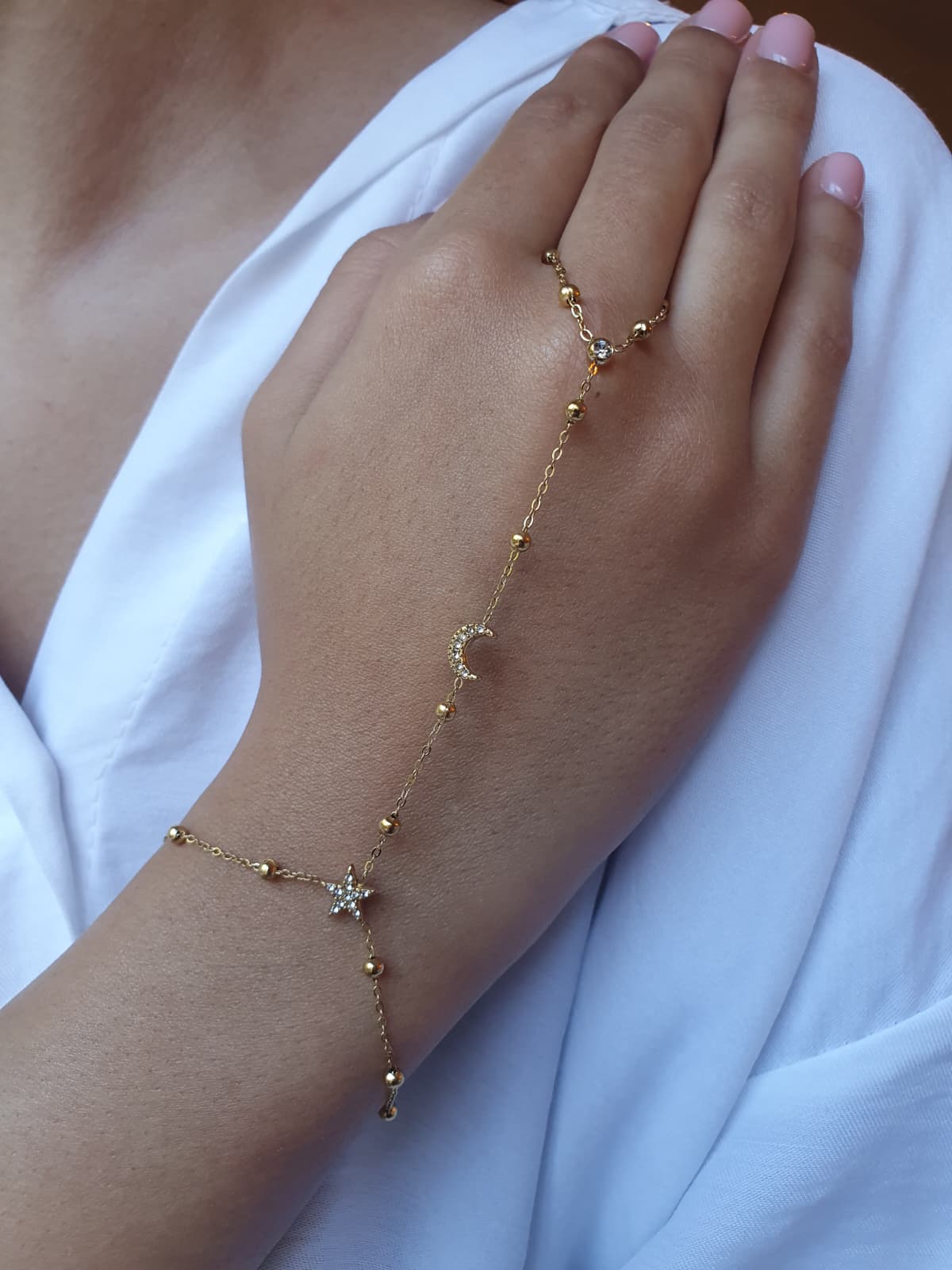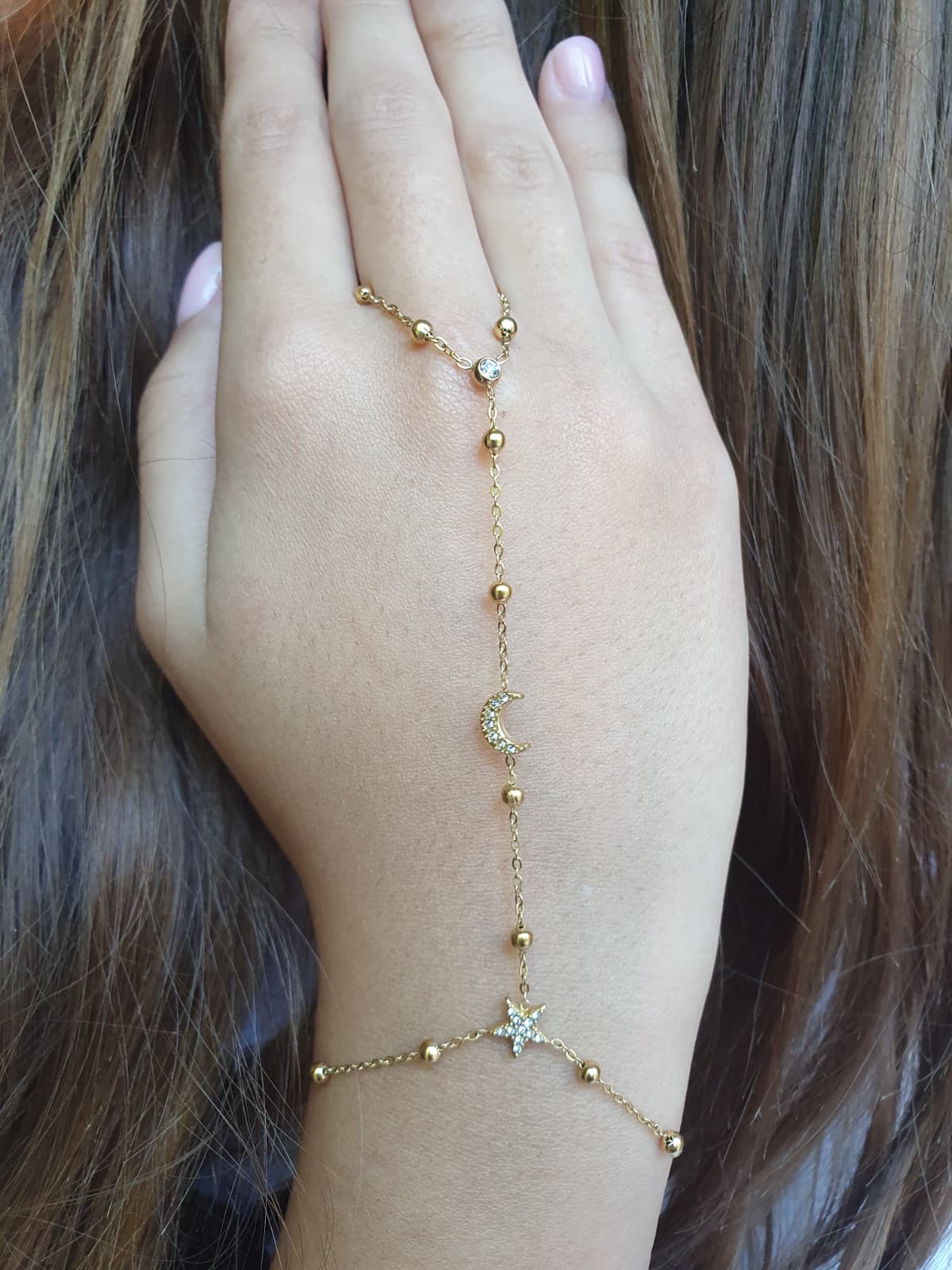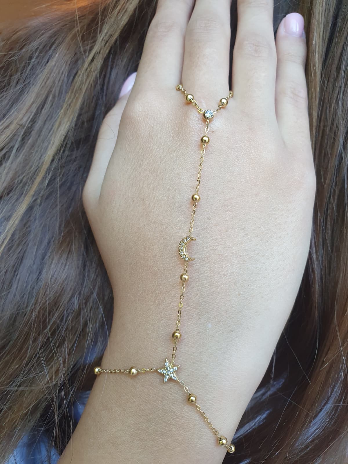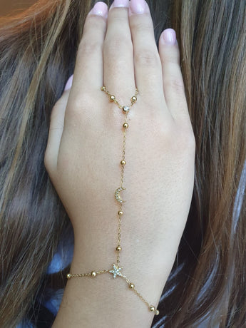Bijou de main étoile et lune zircons - doré