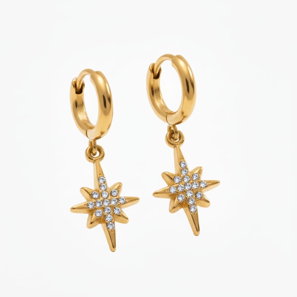 • Boucles d’oreilles composées d’un anneau et d’un pendentif étoile