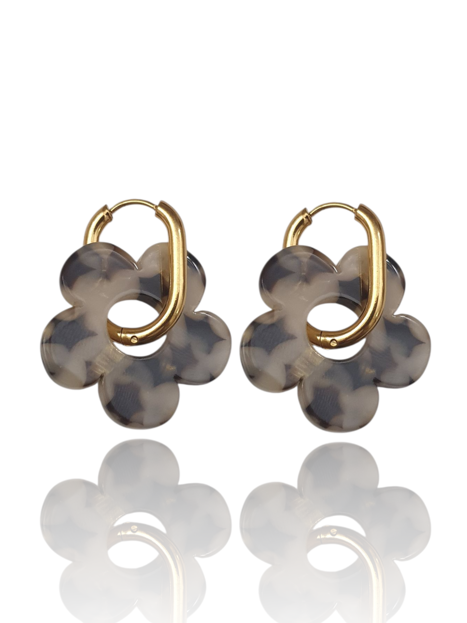 Boucles d'oreilles fleurs - doré | Taupe marbré