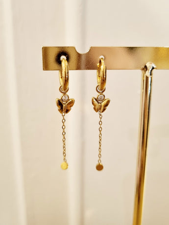 Boucles d'oreilles pendantes papillon & zircon - doré