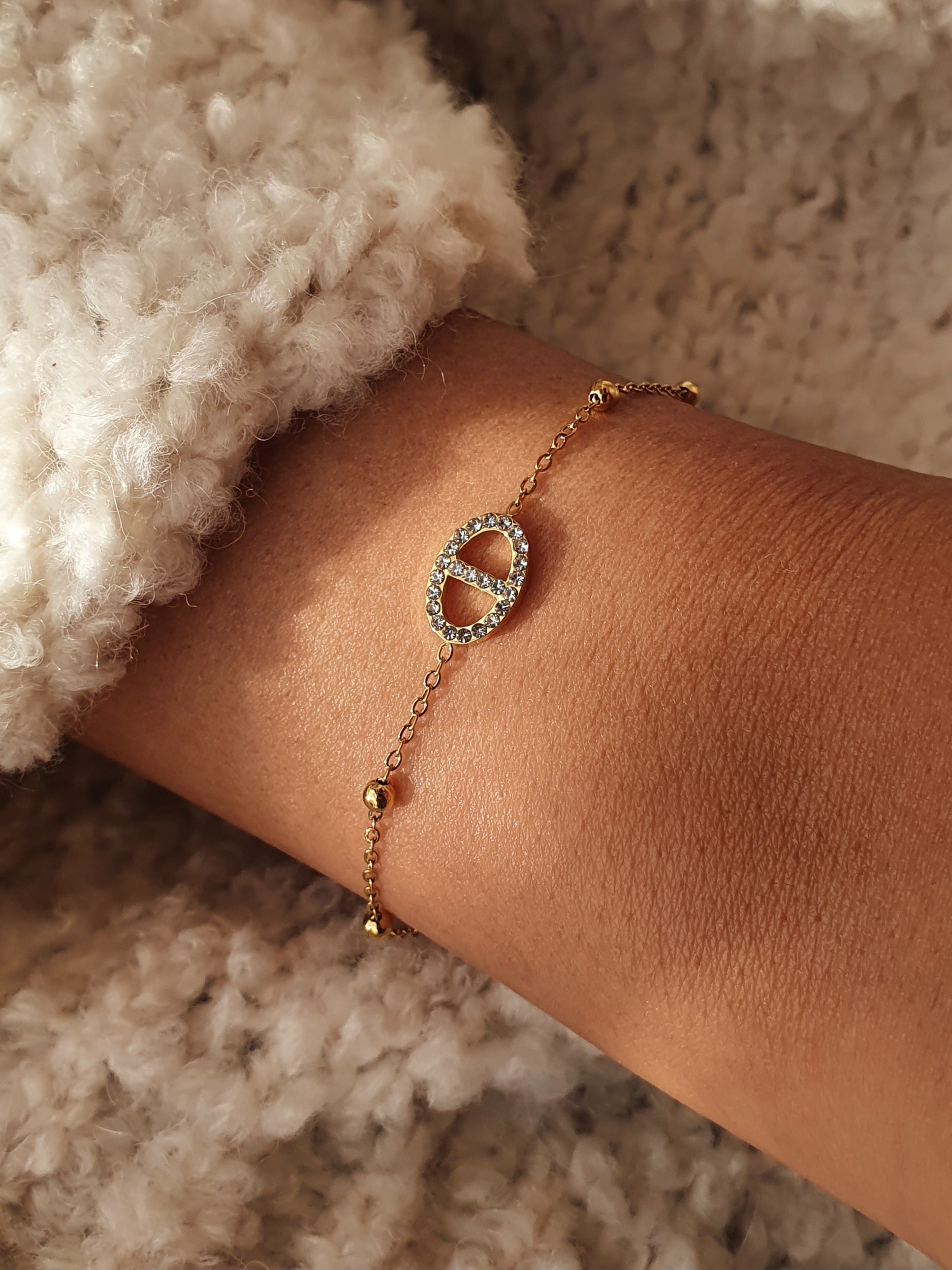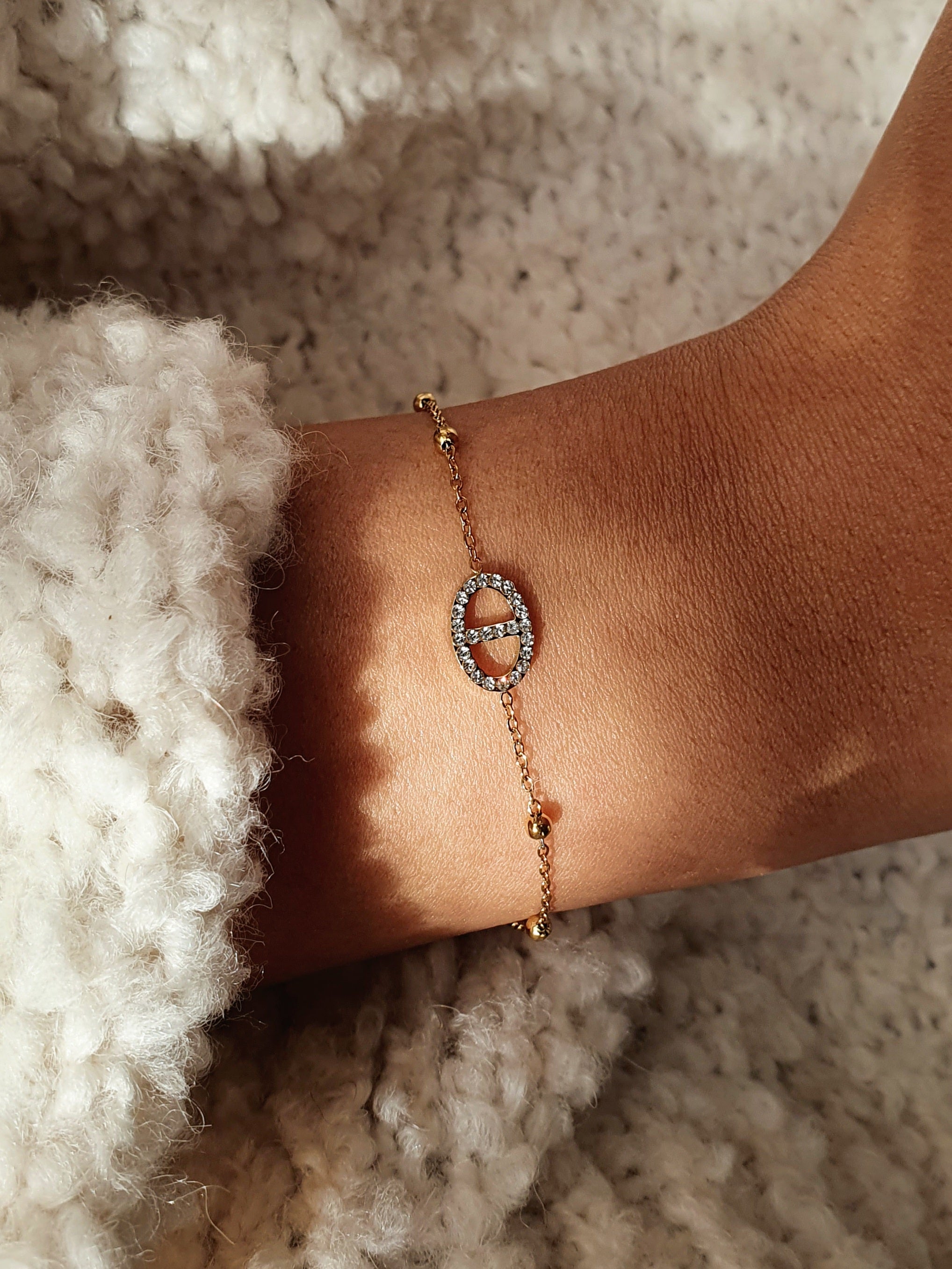 Bracelet maille marine strass et petites perles - doré