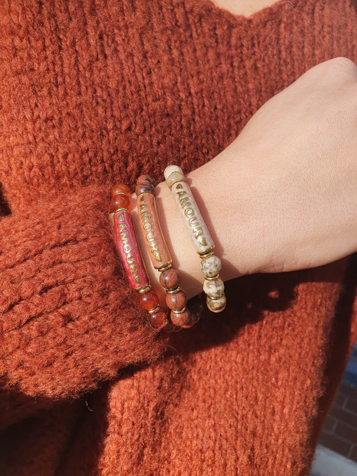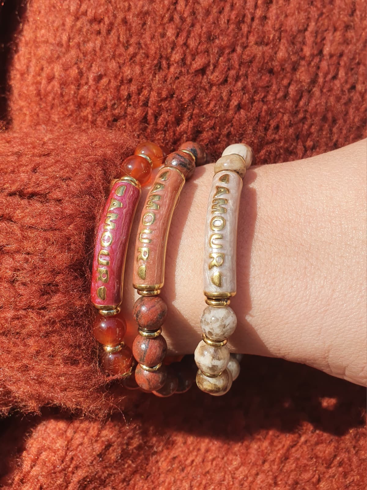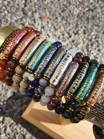 Bracelet en pierre naturelle avec écrit "Amour"