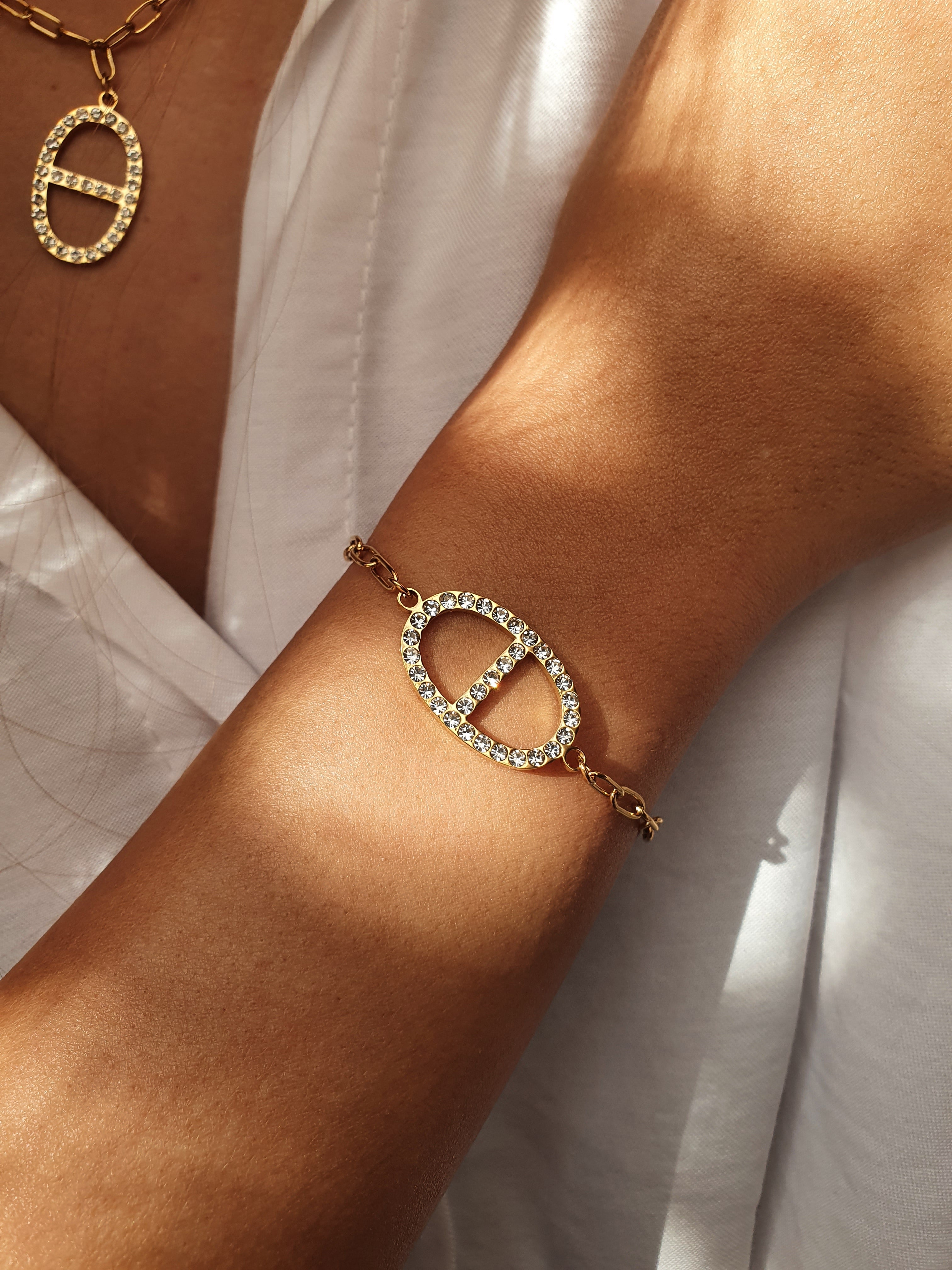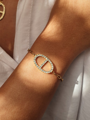 Bracelet maille marine zircons - doré