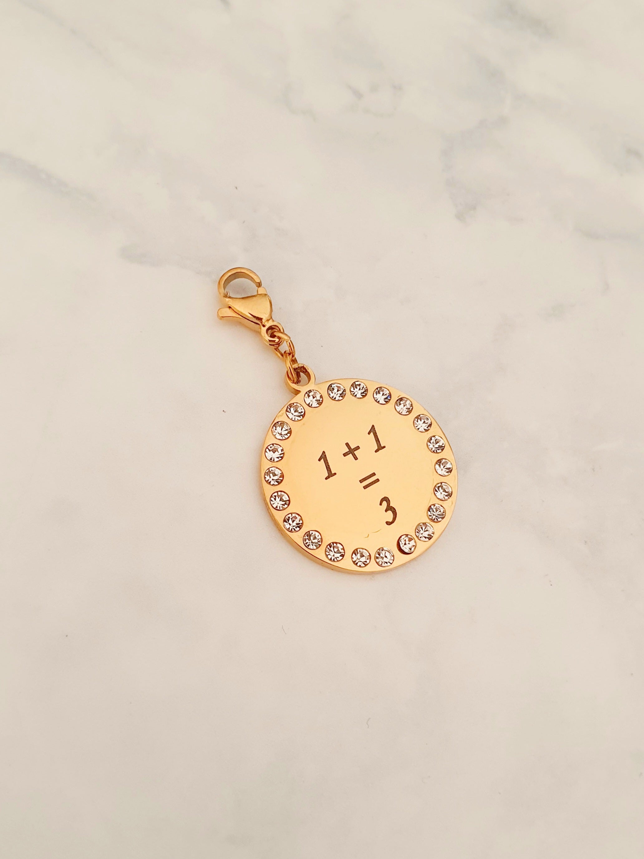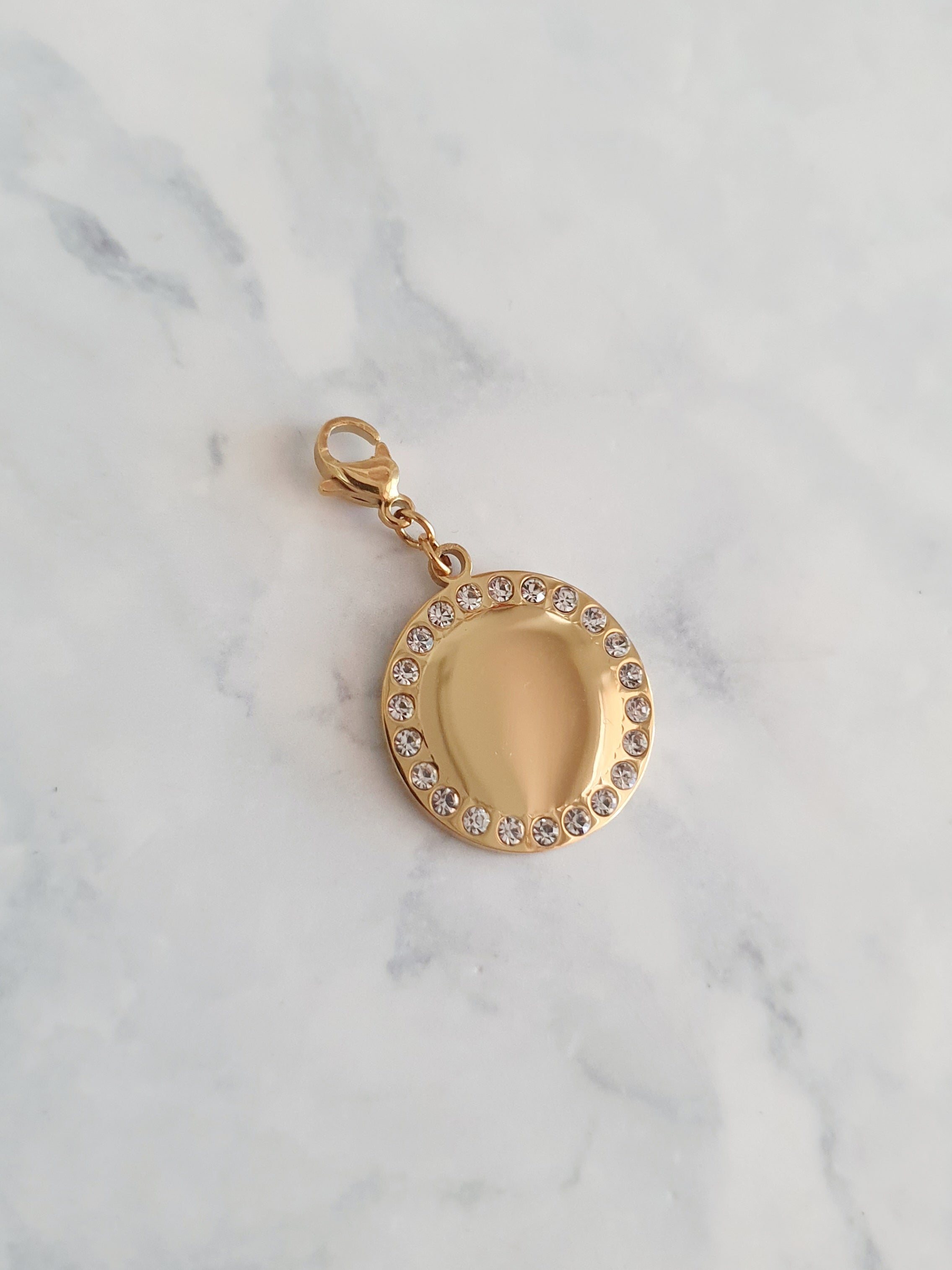 Charm pampille en acier inoxydable doré ou argenté serti de zircons blancs éclatants.