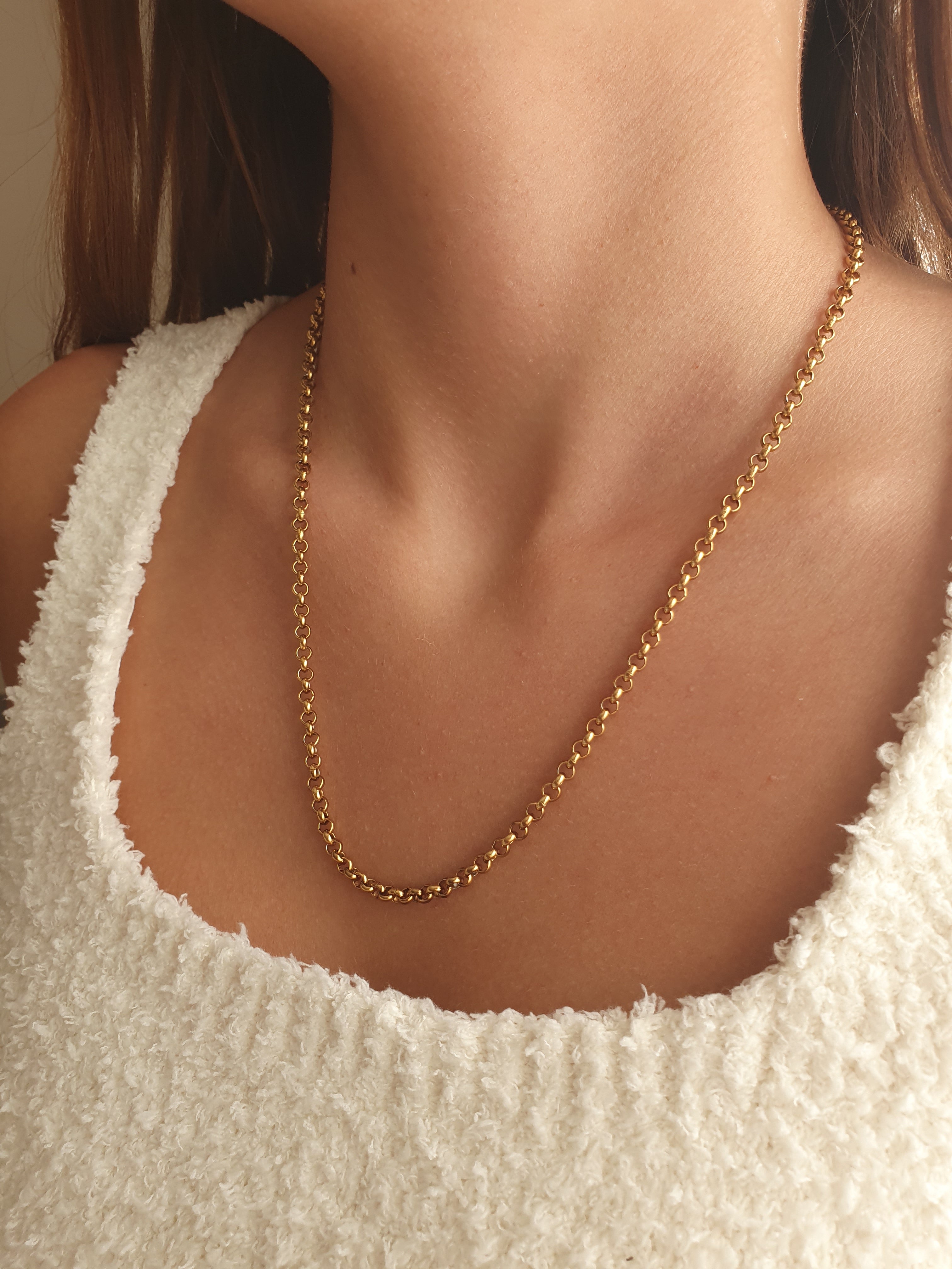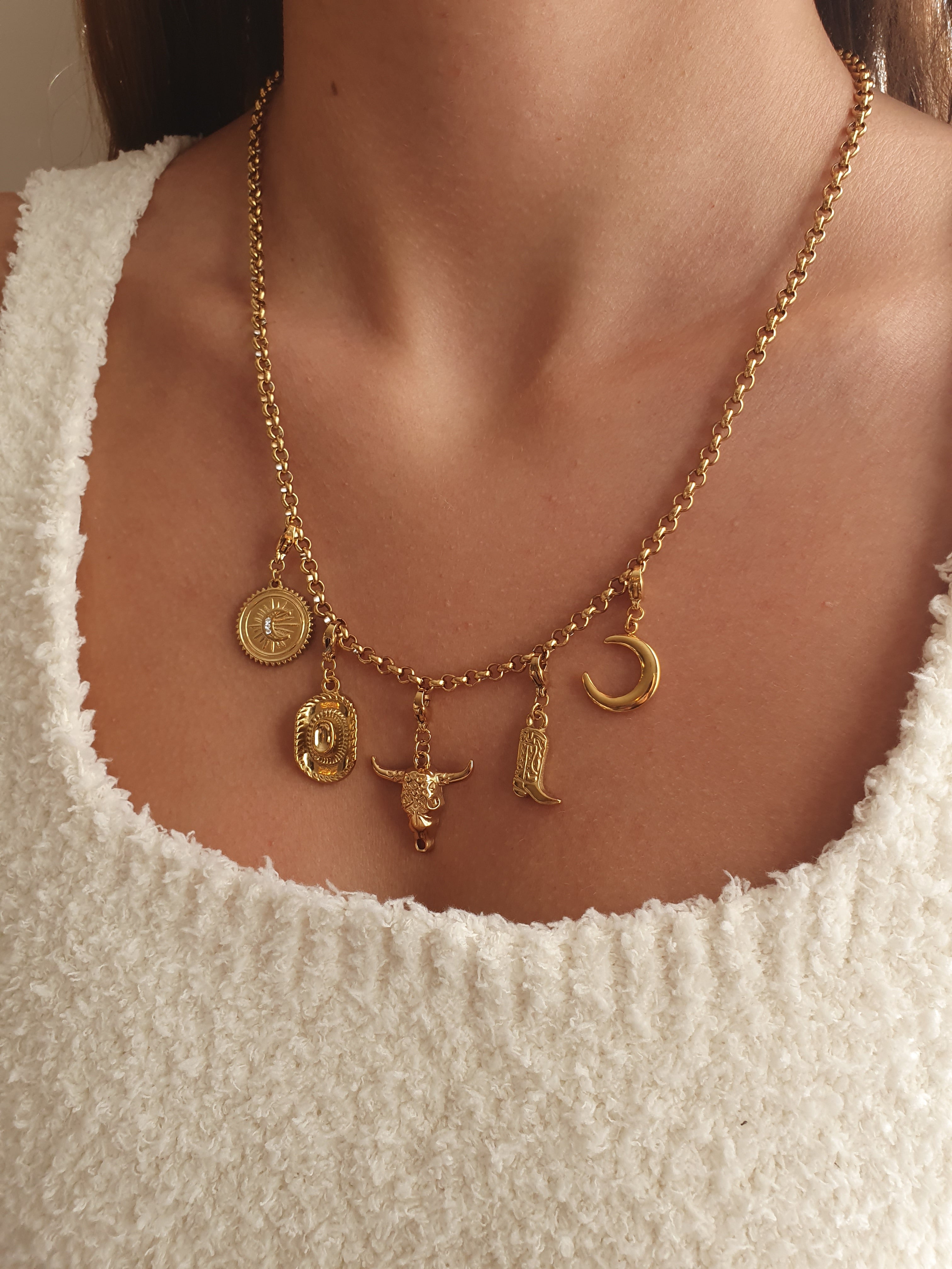 Ce collier peut être porté seul pour un rendu sobre et chic, ou personnalisé avec les charms de votre choix. Chaque charm se fixe aisément, transformant cette maille élégante en base unique et symbolique qui évolue au gré des envies et des souvenirs.