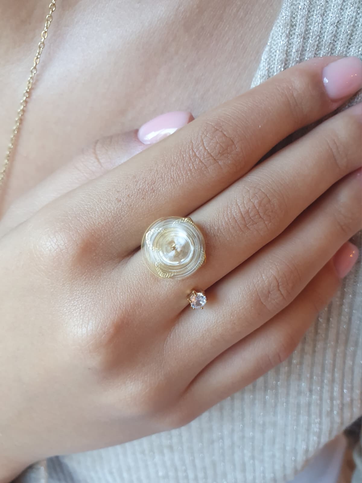 Pensée comme une bague anti-stress, elle révèle un secret apaisant : sa fleur centrale est rotative. Un geste discret et répétitif qui procure une douce sensation de calme, idéale pour relâcher les tensions et ramener l’esprit à l’instant présent.