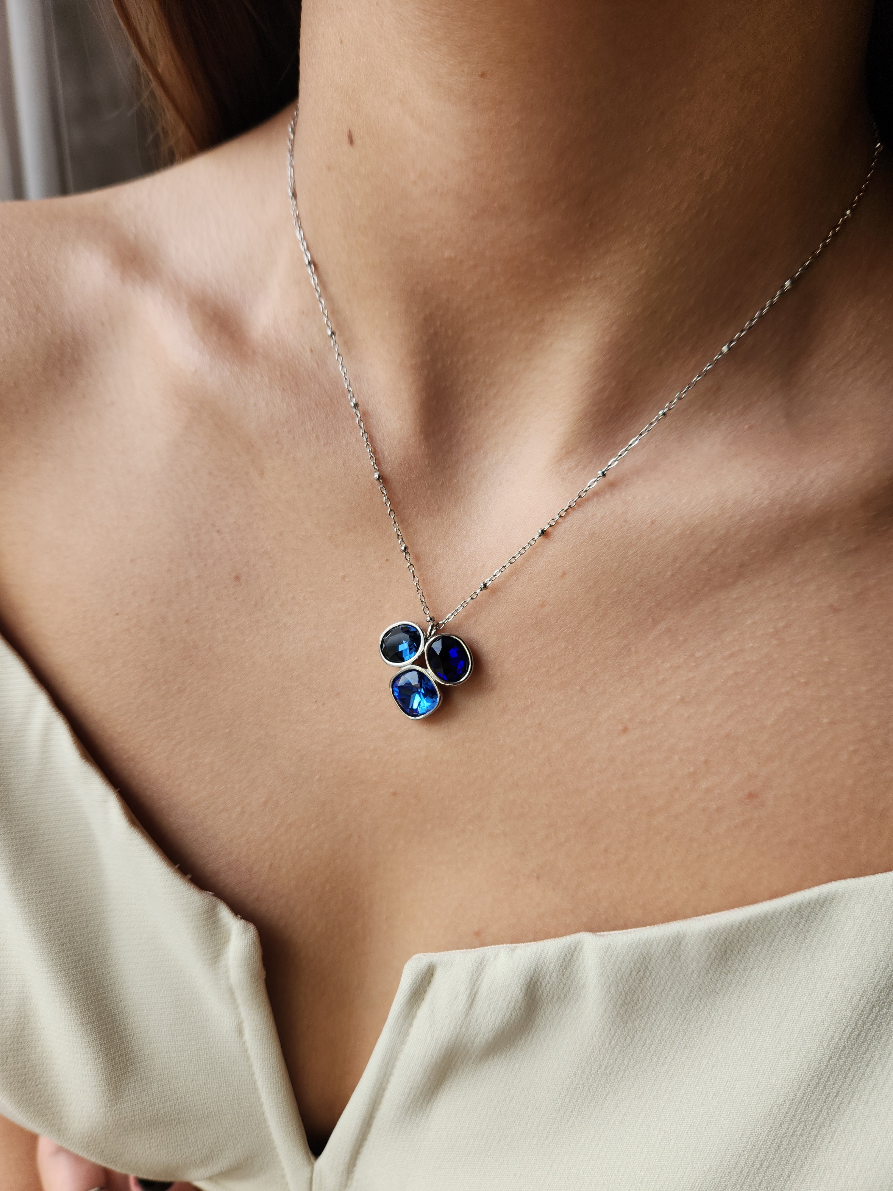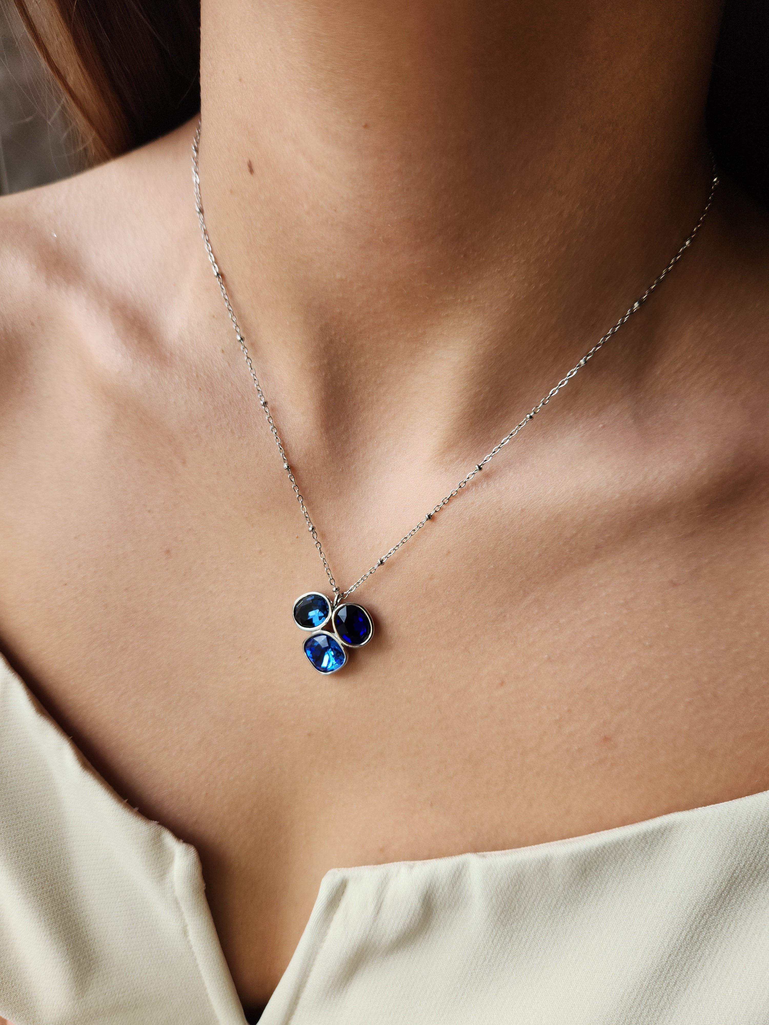Collier Trio de cristaux azurins - argenté
