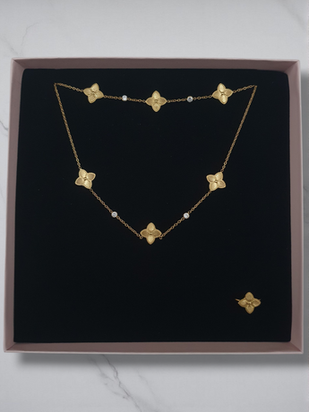 Parure 3 pièces PREMIUM avec écrin Fleurs stylisées - doré