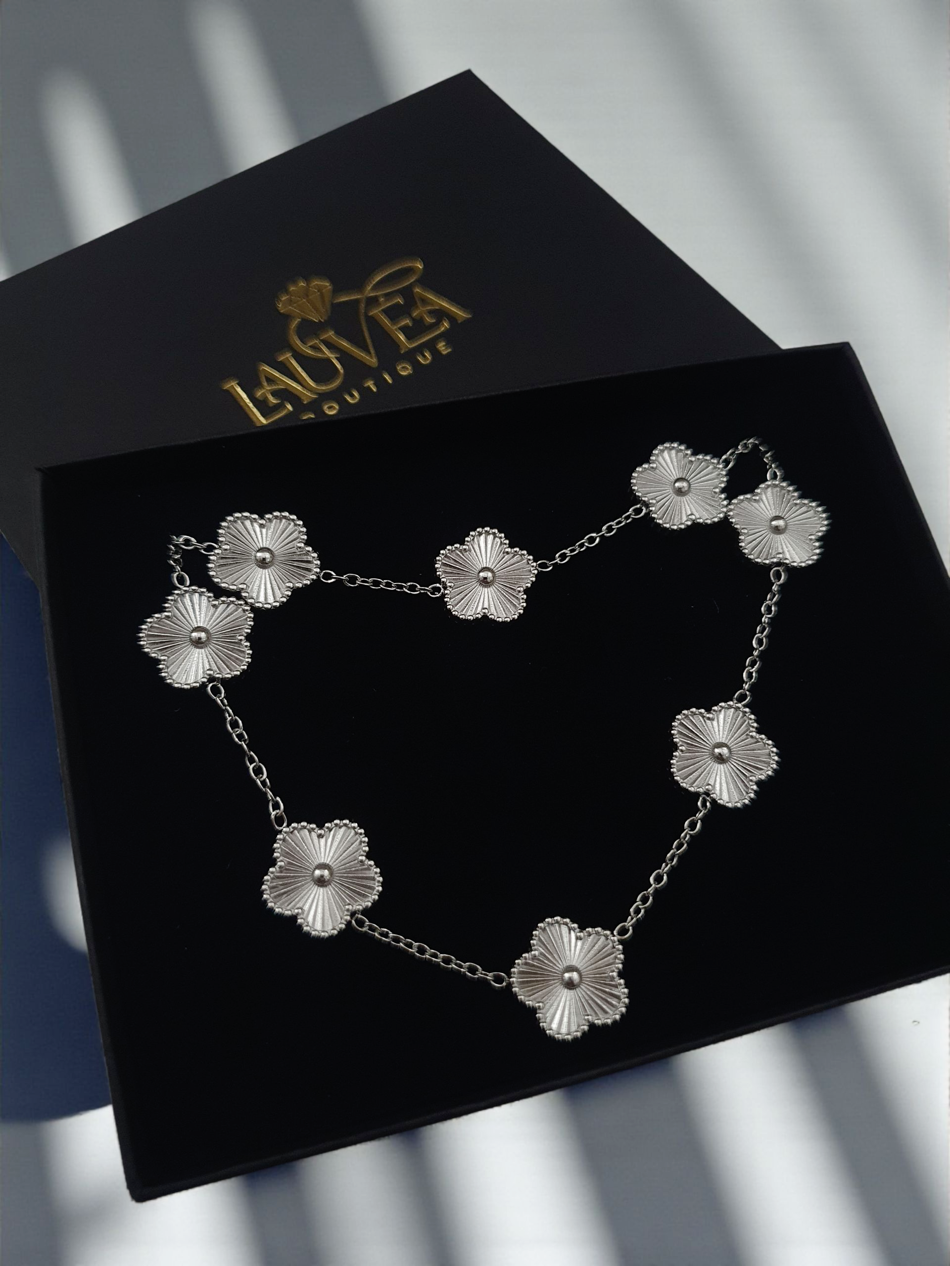 Parure 2 pièces avec écrin Fleurs sculptées - argenté