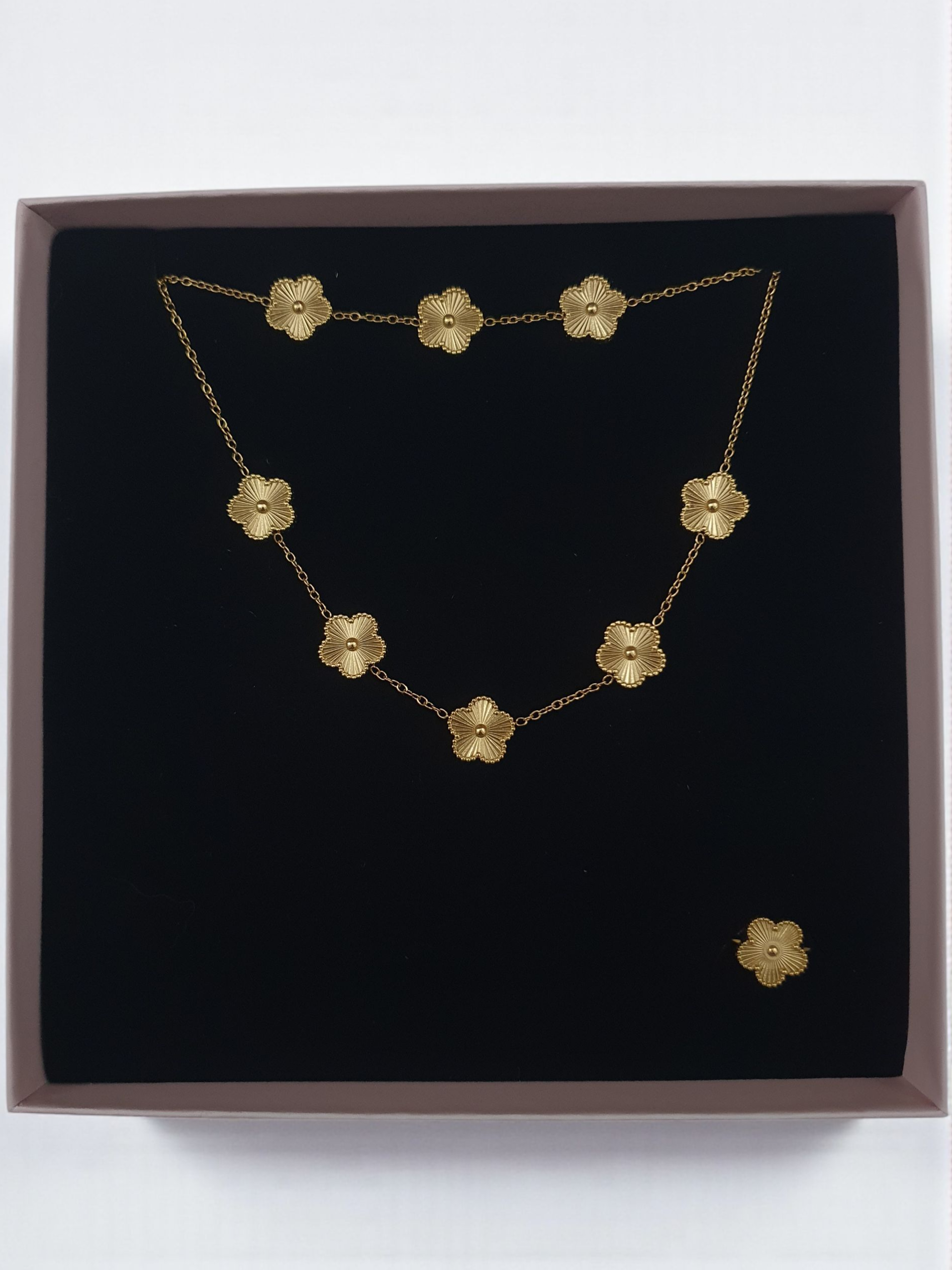 Parure 3 pièces PREMIUM avec écrin Fleurs texturées - doré