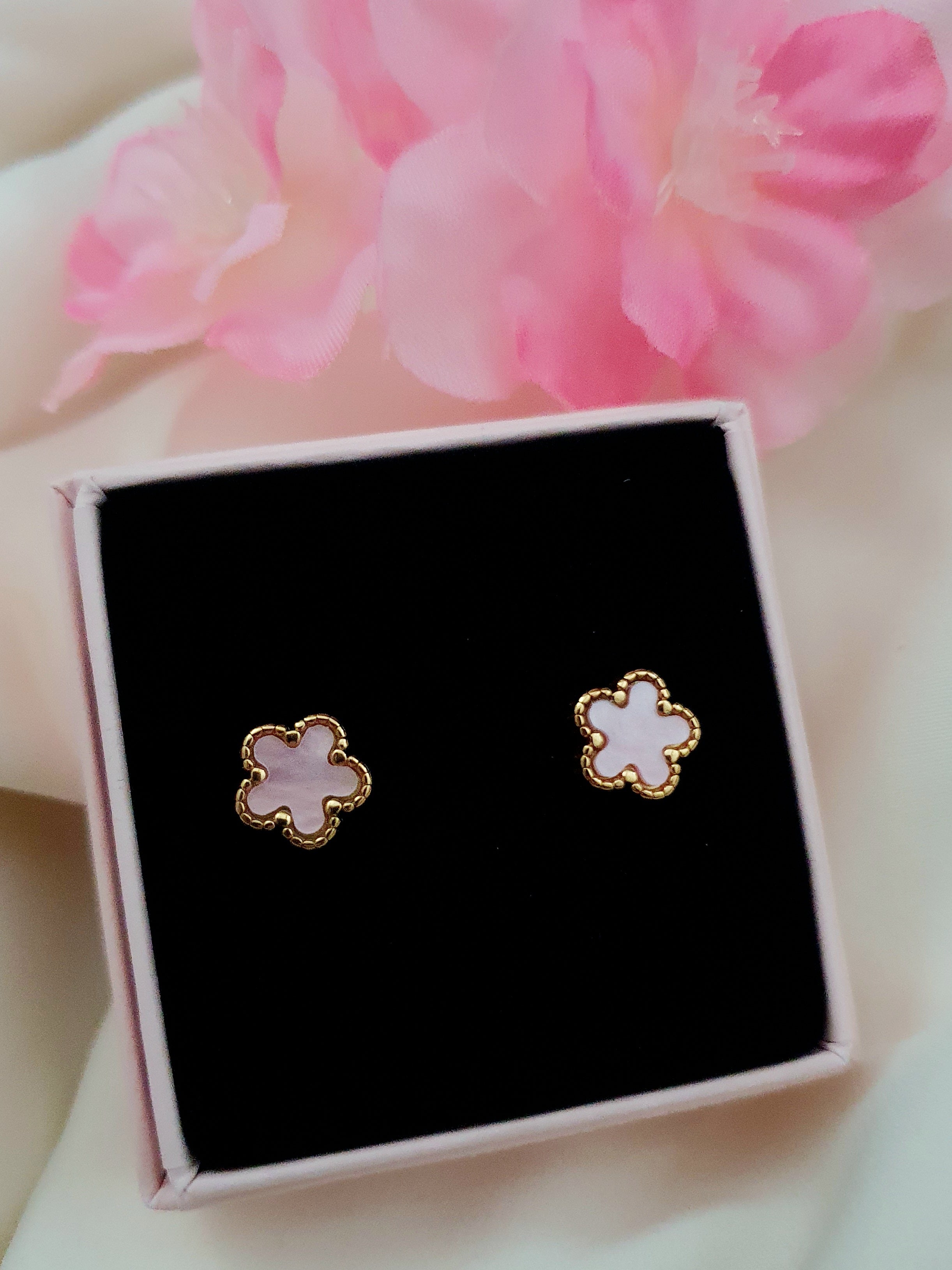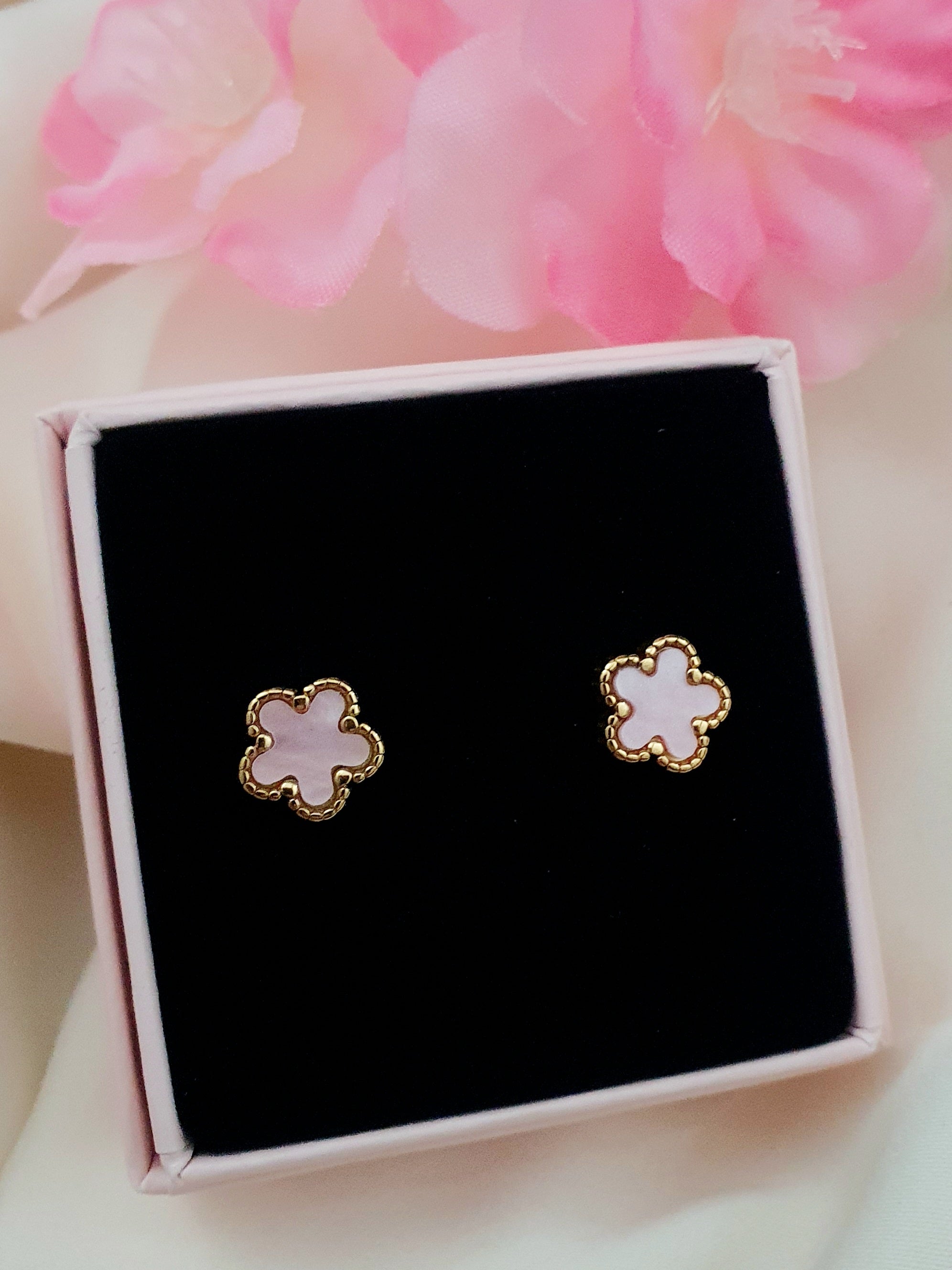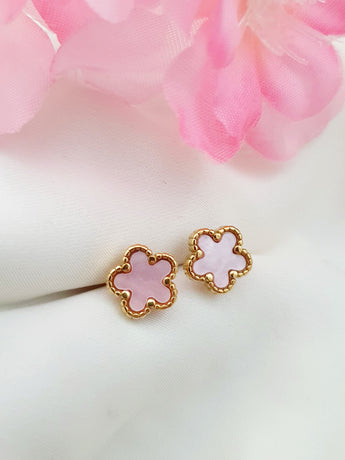 Puce fleurs roses en nacre - doré