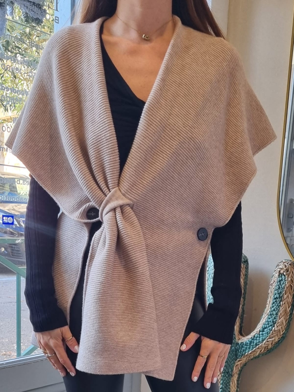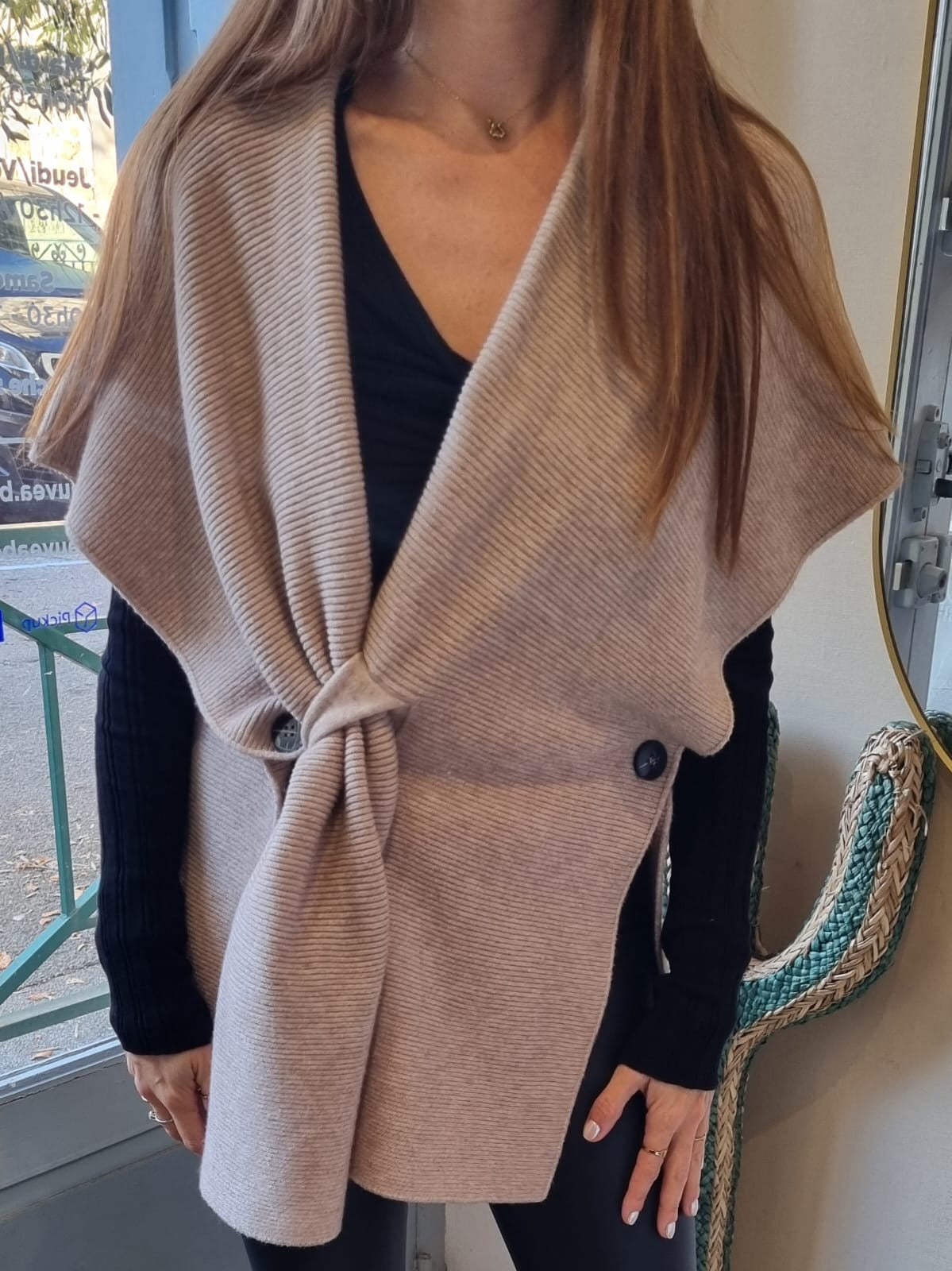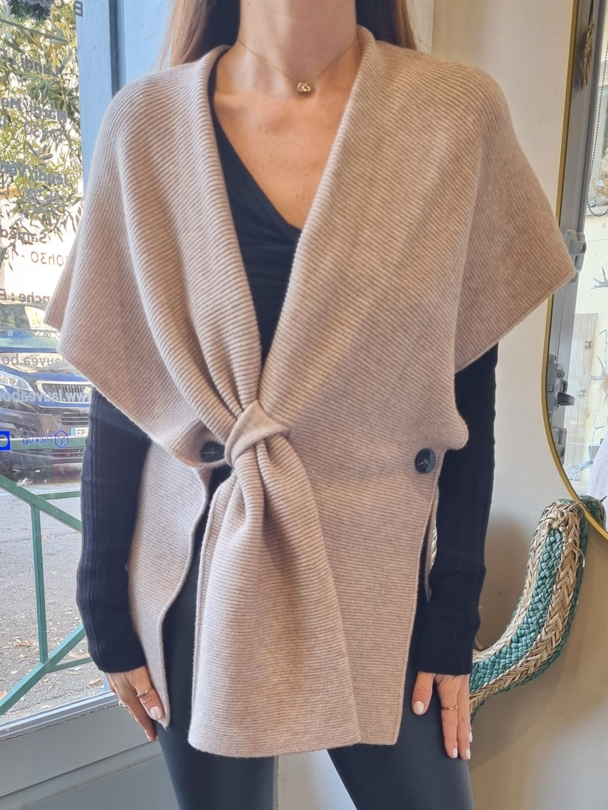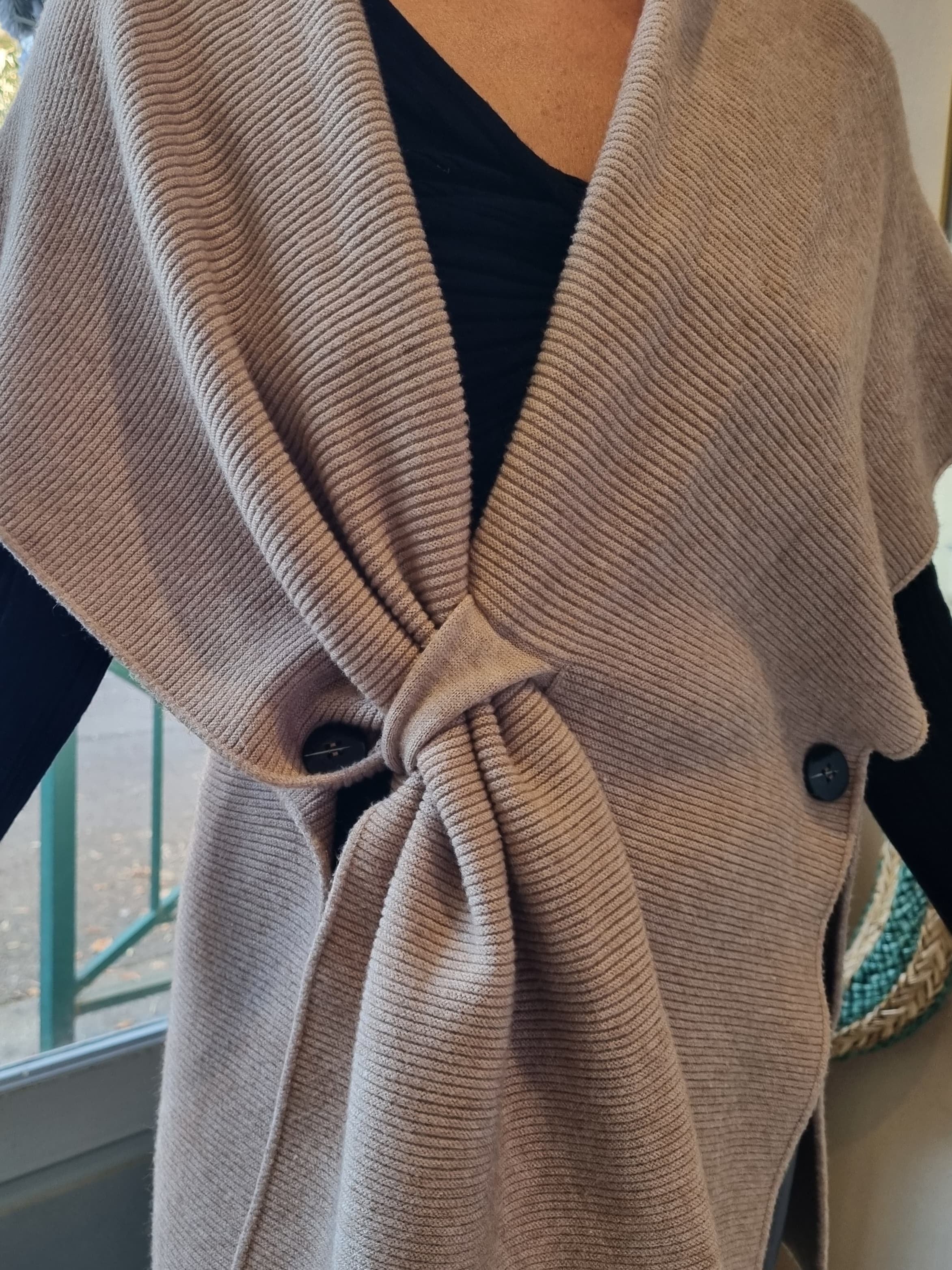 Châle asymétrique côtelé - écru