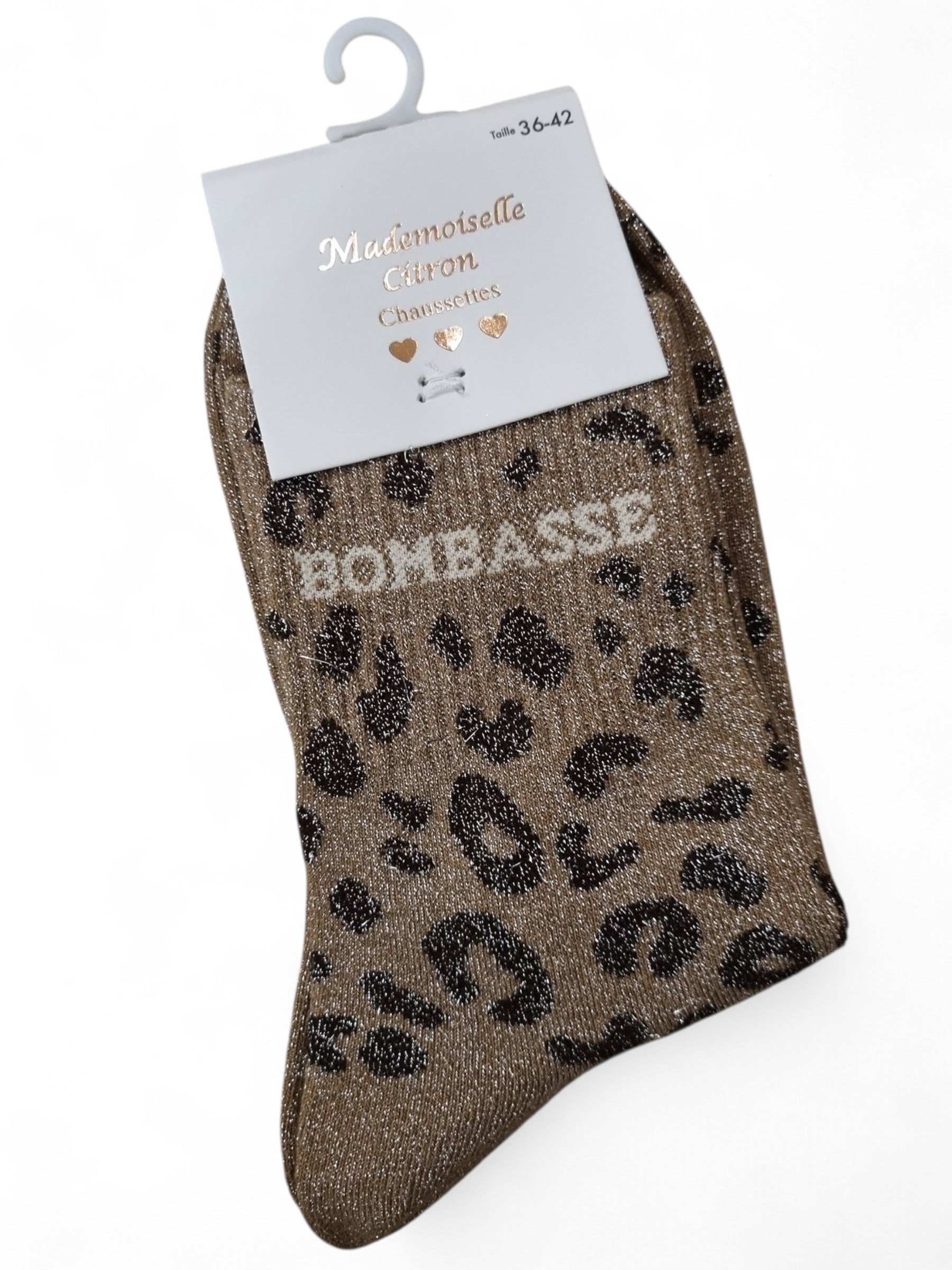 Chaussettes pailletées à message BOMBASSE | Marron léopard